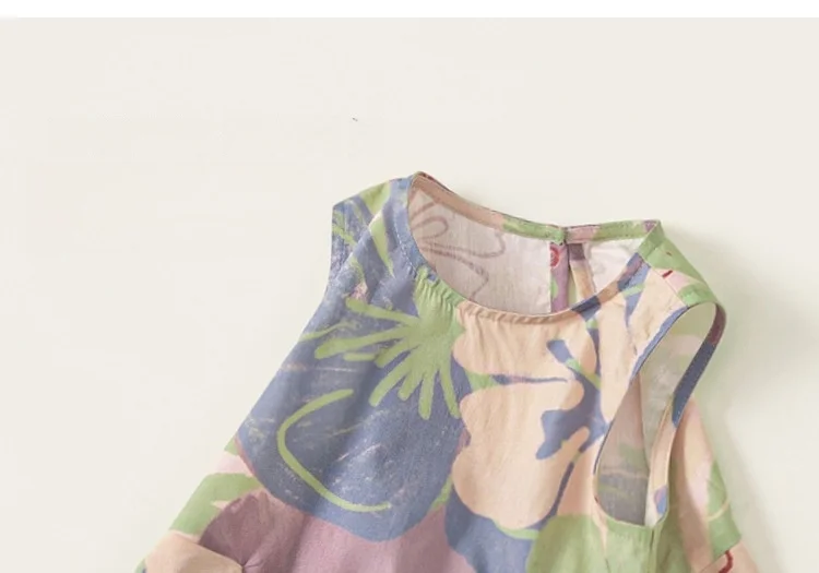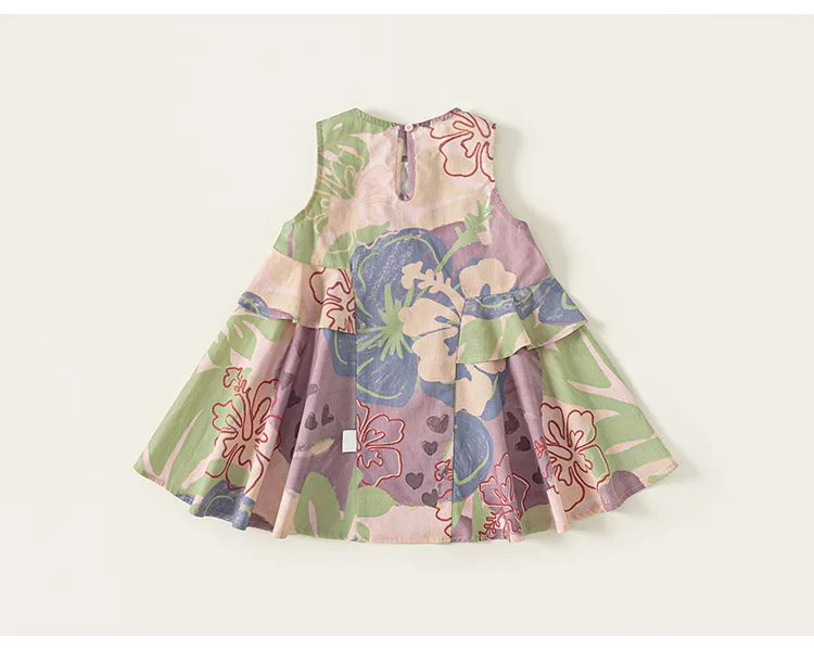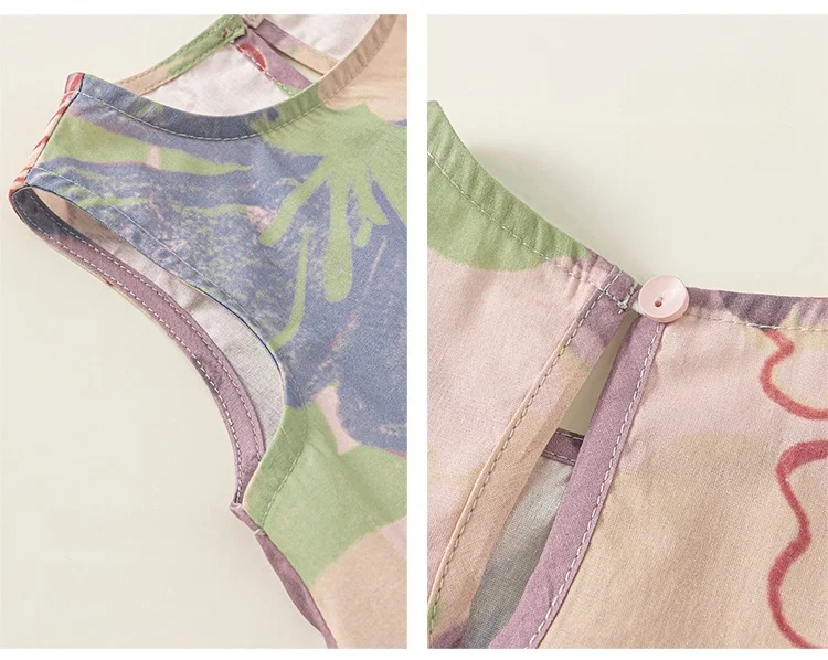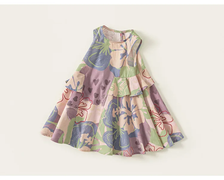 El vestido presenta un cuello redondo clásico y un estilo sin mangas y holgado que ofrece un movimiento sin restricciones.Los estampados modernos y llamativos añaden un toque de ternura y moda, haciendo que tu niña destaque en cualquier ocasión.
