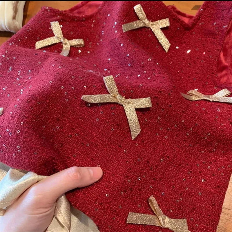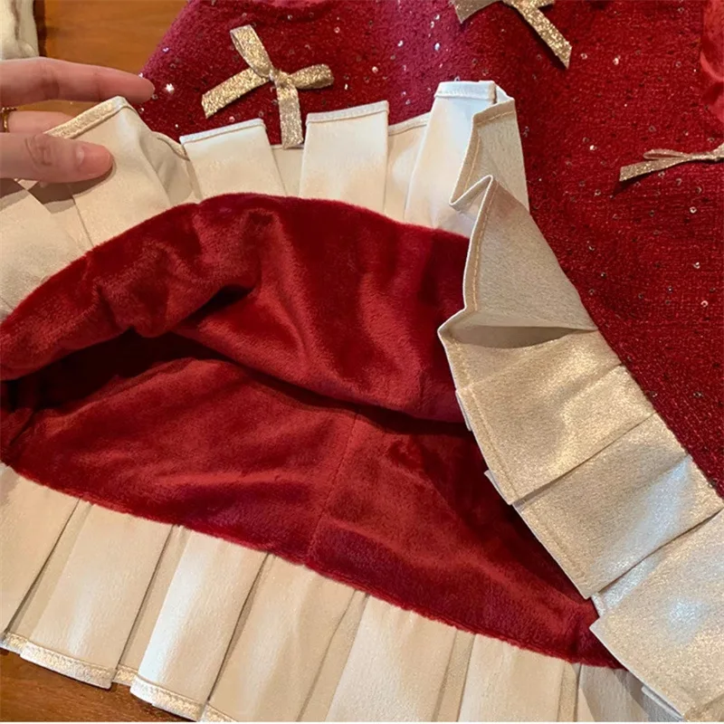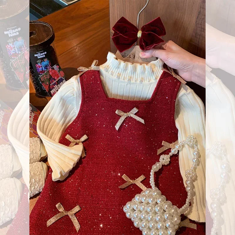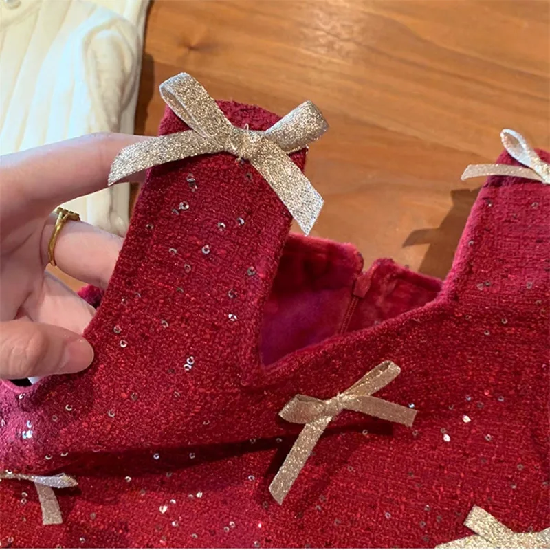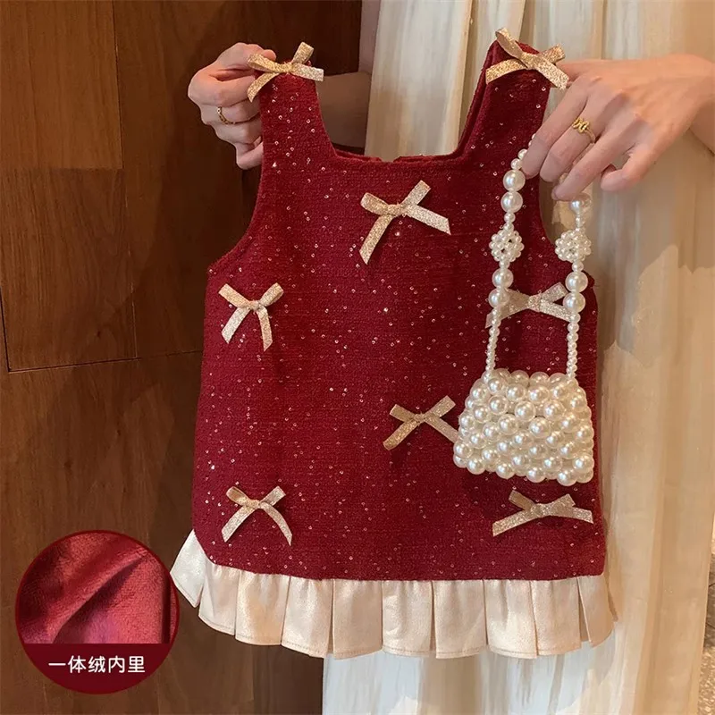 Comprar MILANCEL nuevo vestido de otoño para niños 2-7T lindo arco Patchwork niñas vestido delantal dulce día de Navidad espesar ropa para niños