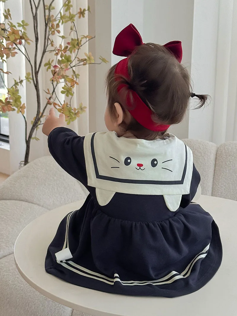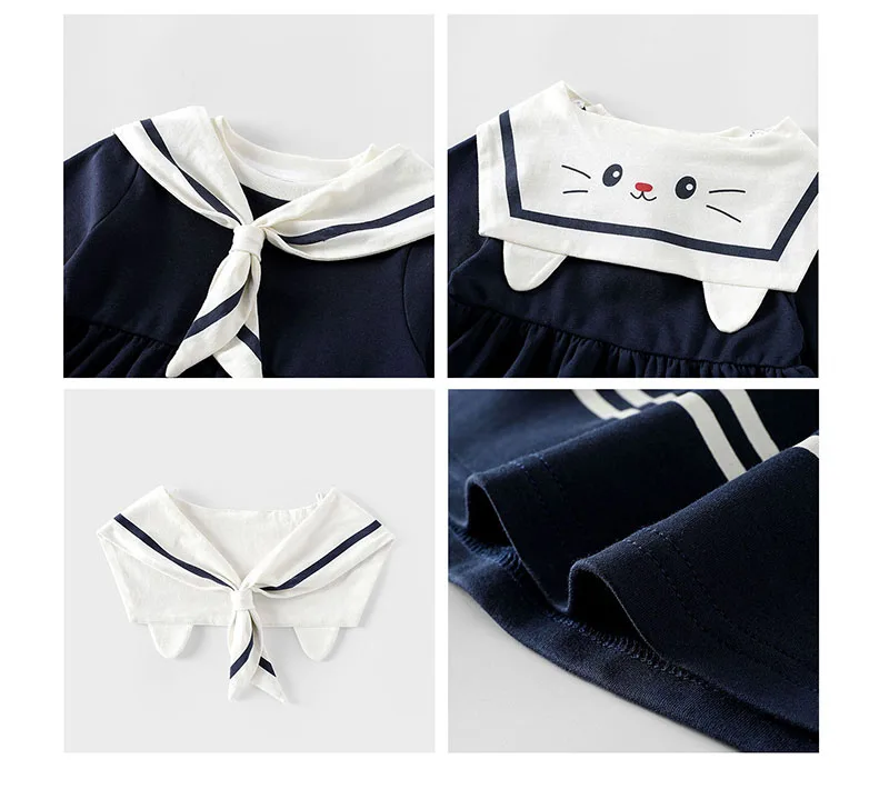 El clásico collar de marinero combina con un lindo detalle de gato en 3D en la parte posterior, combinando el encanto náutico con un capricho divertido.