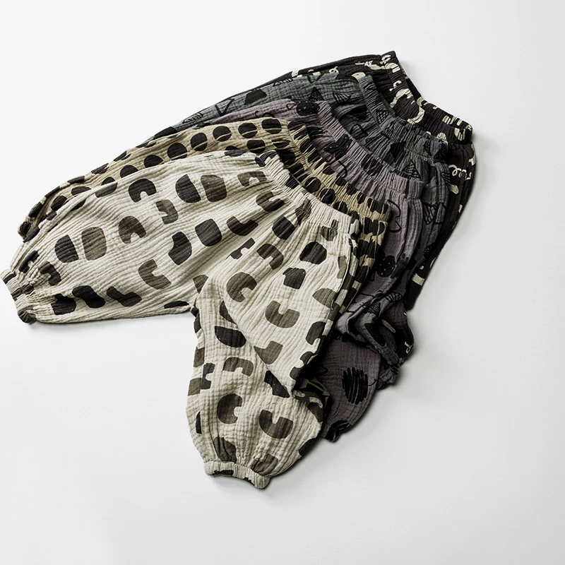 1.**Patrones de estampados únicos**: Los pantalones cuentan con una variedad de patrones de estampados creativos y llamativos, lo que hace que los atuendos de los niños sean más personalizados y modernos.