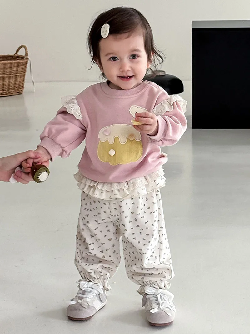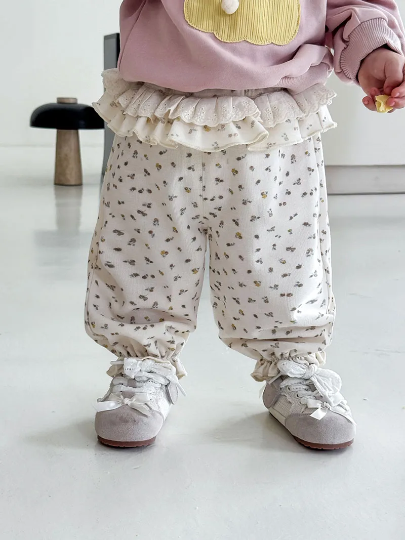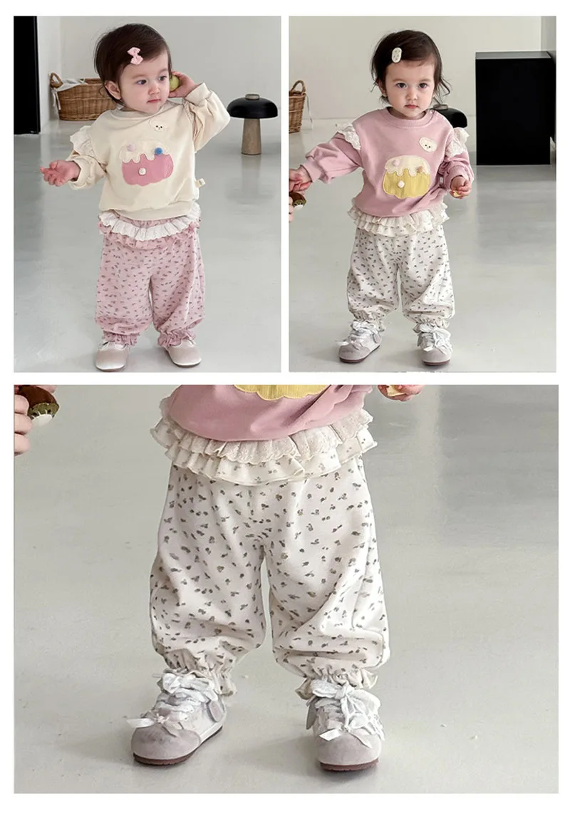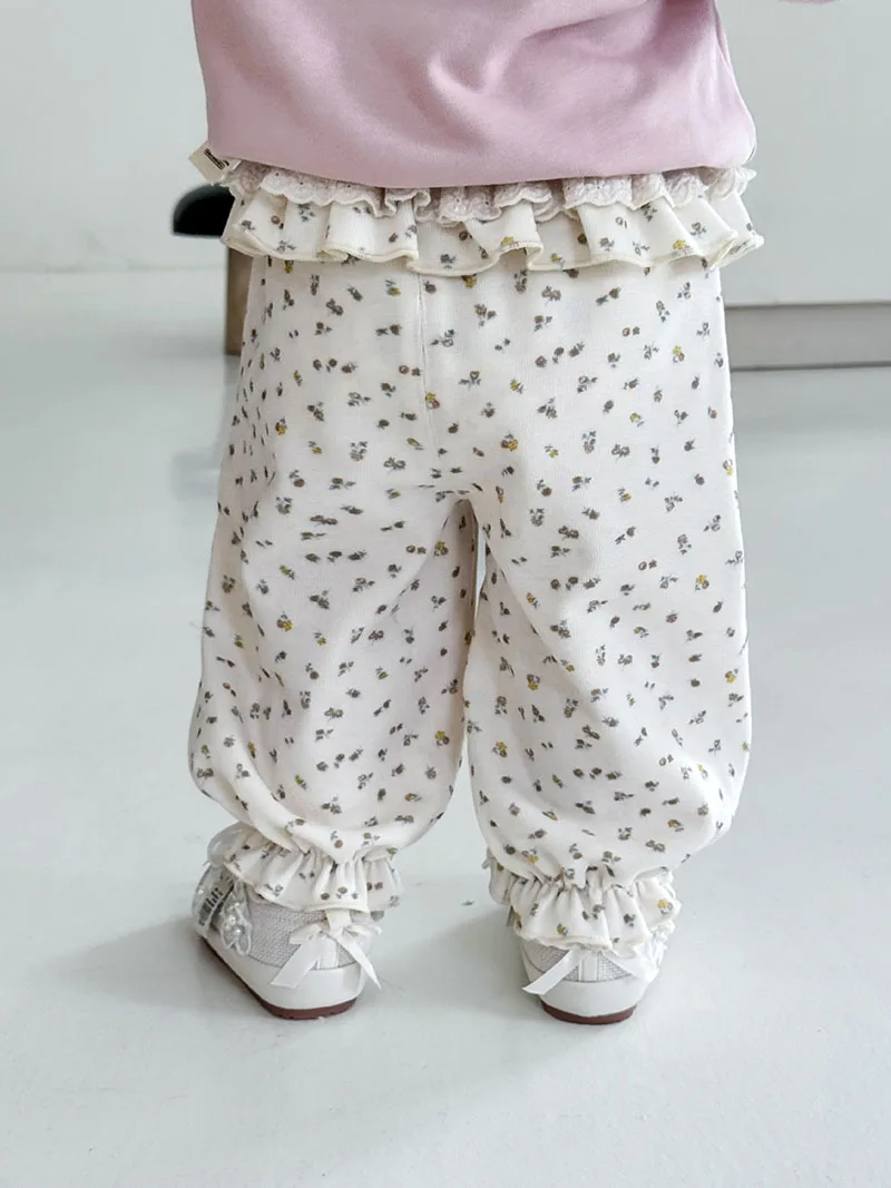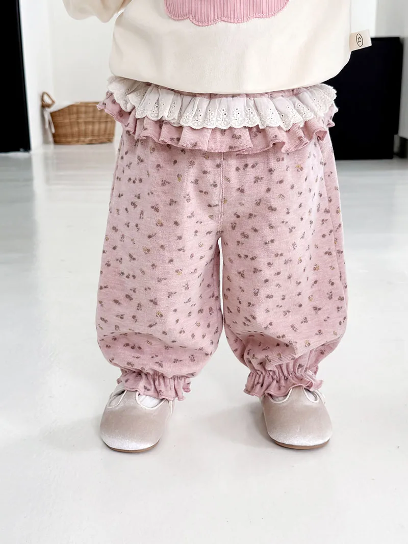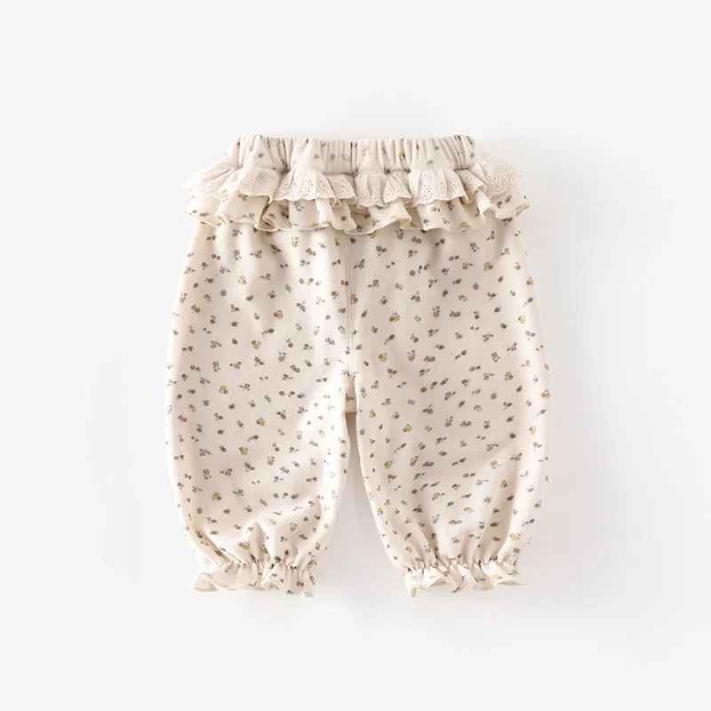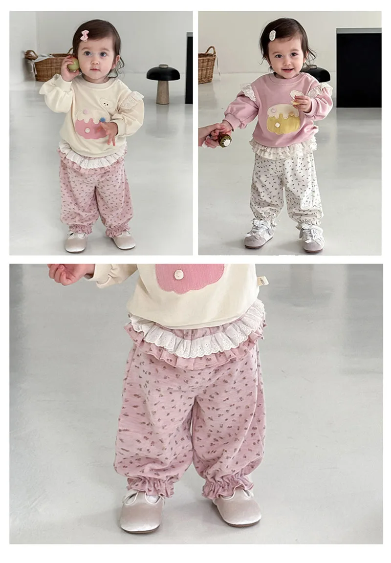 Comprar MILANCEL, nuevos pantalones cónicos de otoño para niños, 9M-5T, bonitos pantalones florales de encaje para niñas, pantalones casuales coreanos sueltos y finos con flores para niños
