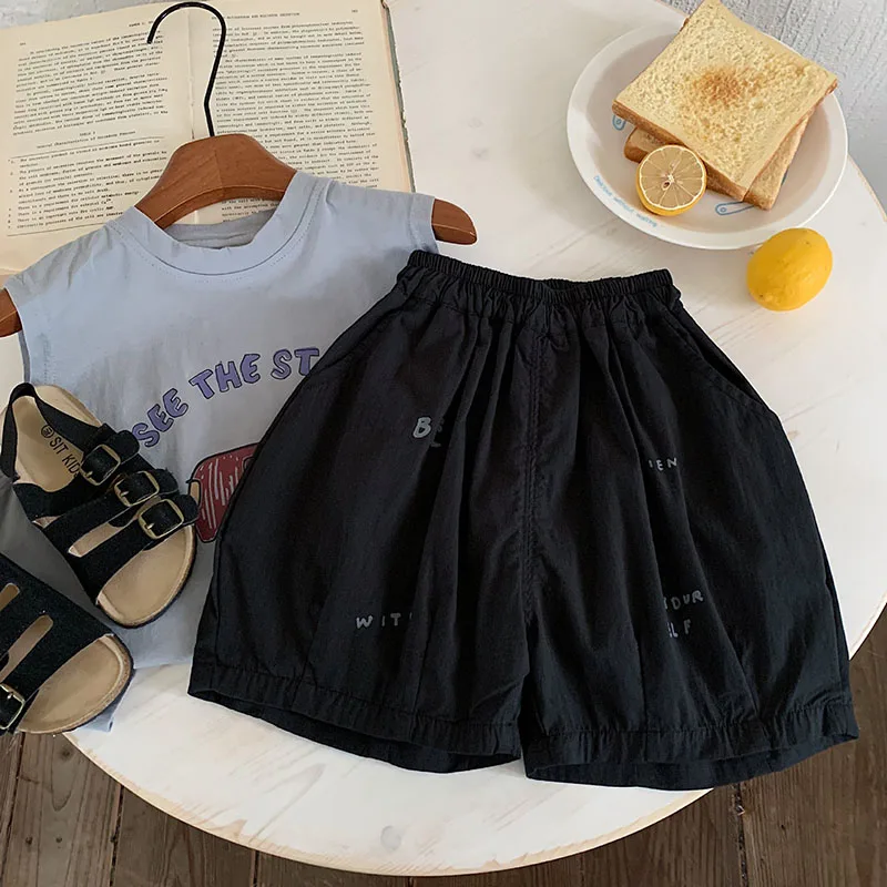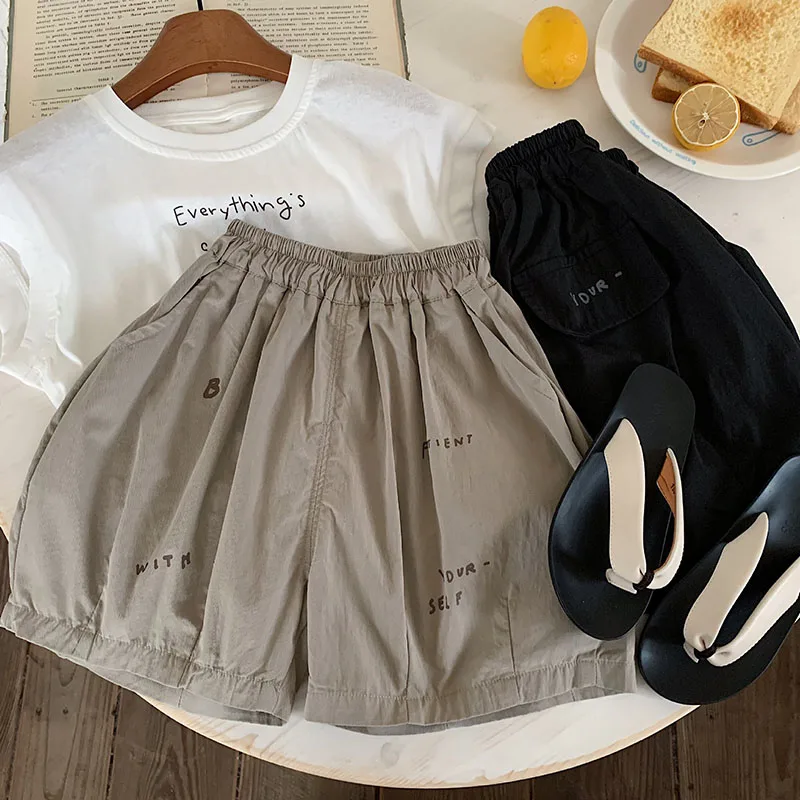 1.** Diseño moderno con estampado de letras**: estos pantalones cortos presentan elegantes estampados de letras, que añaden un toque de moda y personalidad a los conjuntos de los niños, haciéndolos destacar.