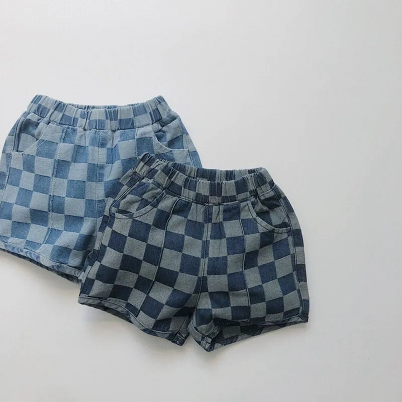 1.**Patrón a cuadros de moda**: estos pantalones cortos presentan un diseño a cuadros clásico, que agrega un aspecto moderno y atemporal al guardarropa de su hijo.El patrón de cuadros en tonos azules es llamativo y versátil.