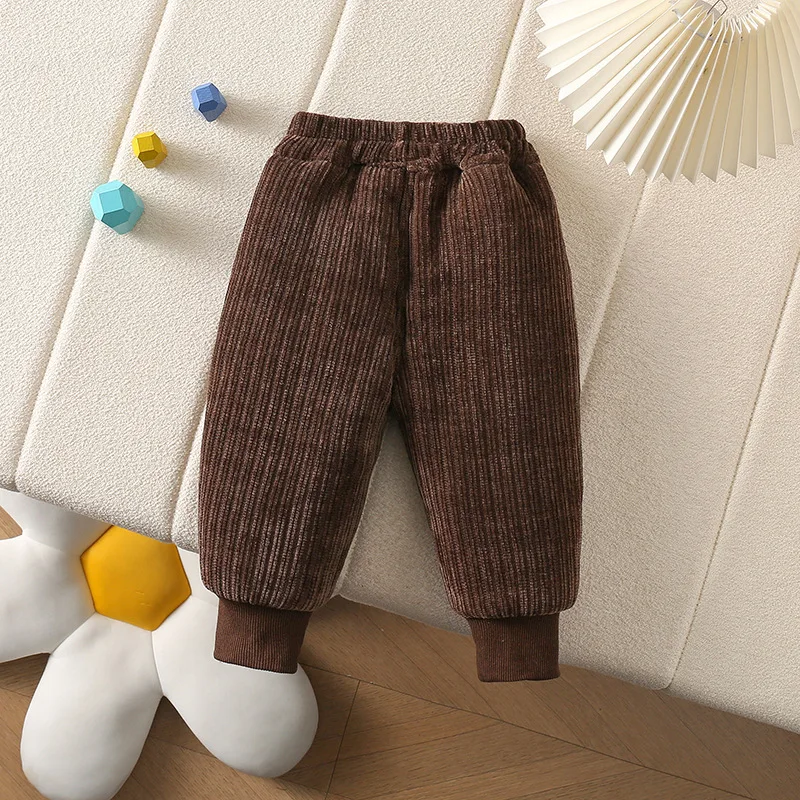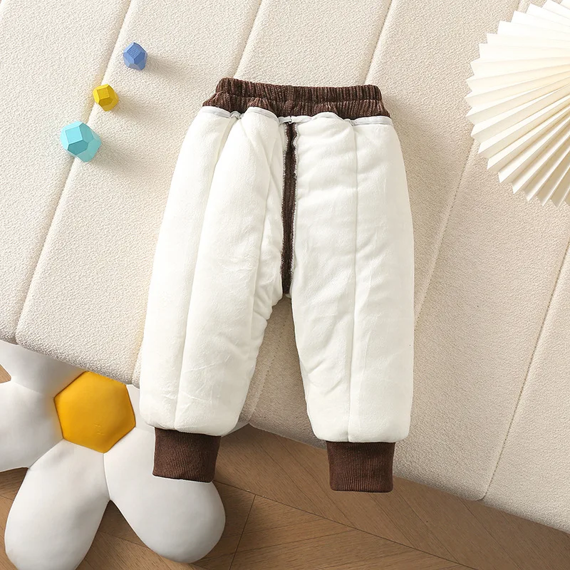 Comprar MILANCEL, nuevos pantalones de invierno para niños, pantalones de tiras de Color sólido para niños, pantalones casuales acolchados de lana para niños