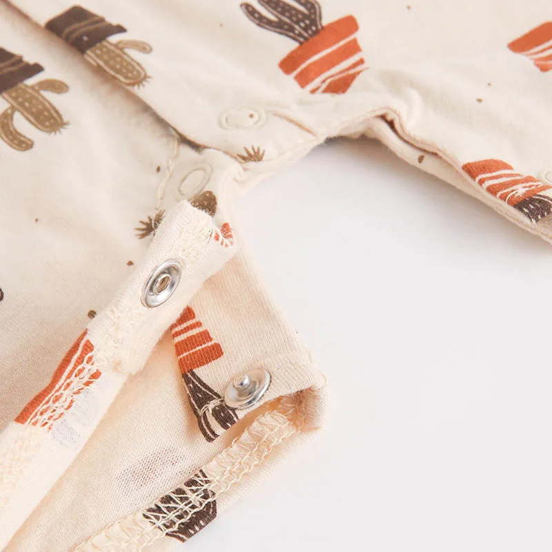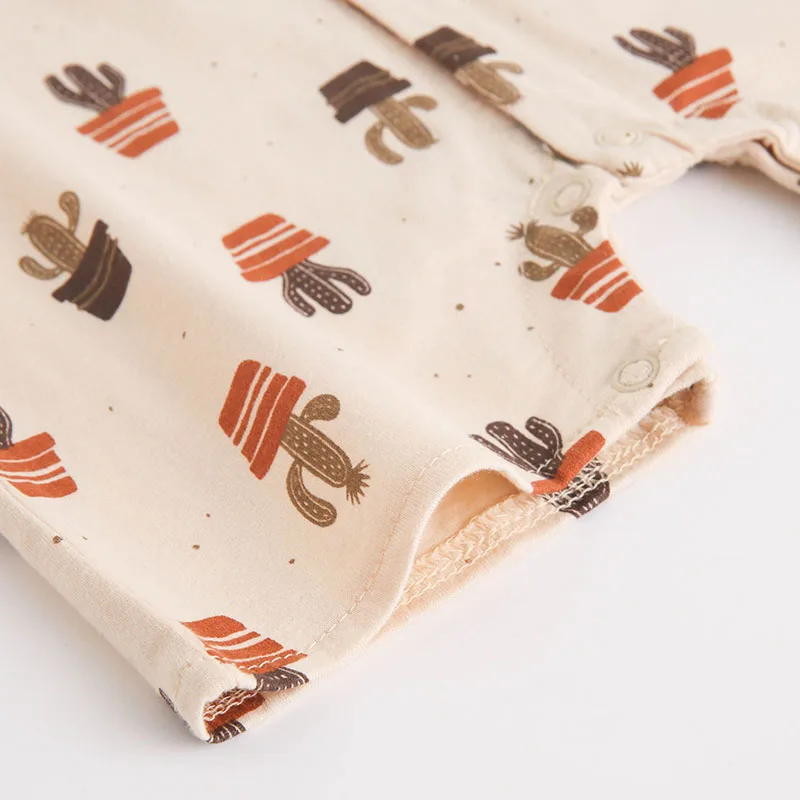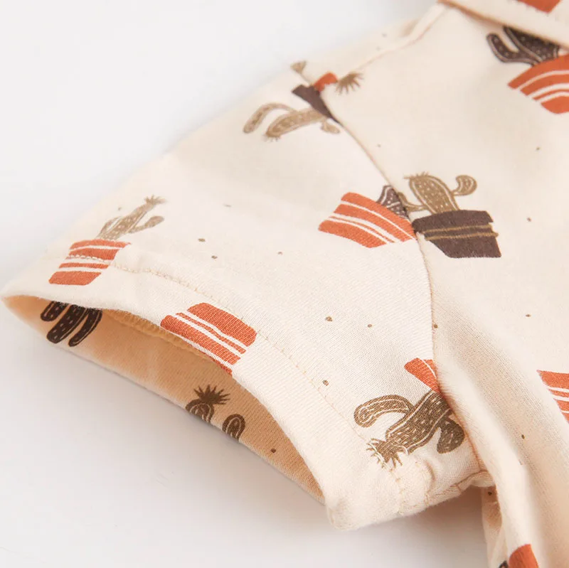 1.**Encantador estampado de cactos**: este mameluco de manga corta para bebés de 0 a 2 años presenta un estampado de cactos completo.Los lindos patrones de cactus en tonos terrosos sobre un fondo claro están llenos de un ambiente veraniego, lo que hace que su bebé luzca adorable y a la moda.