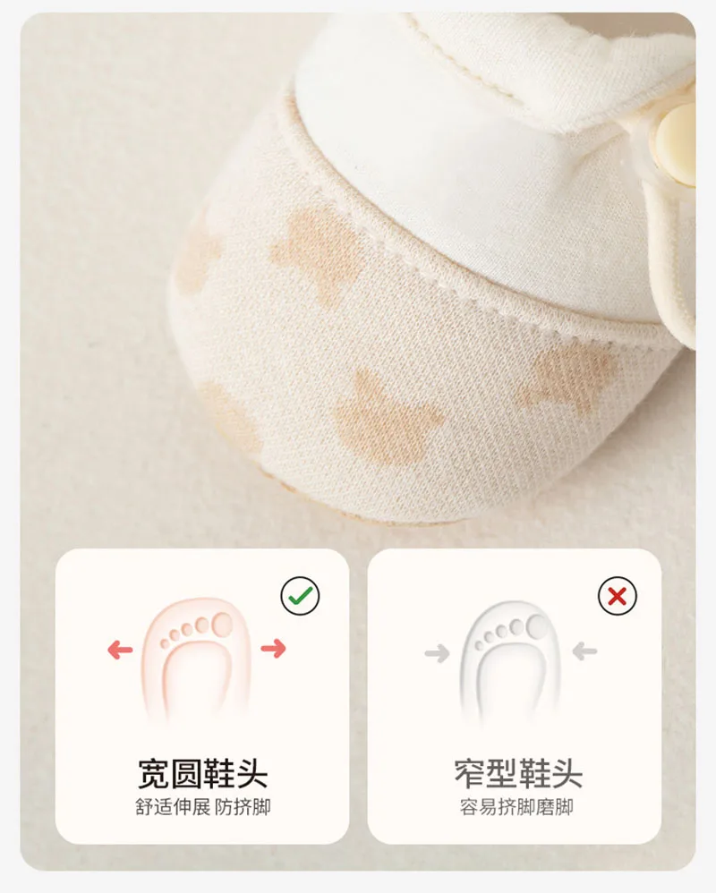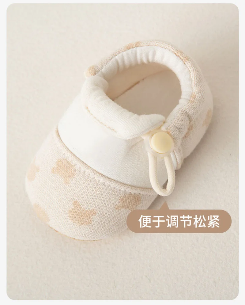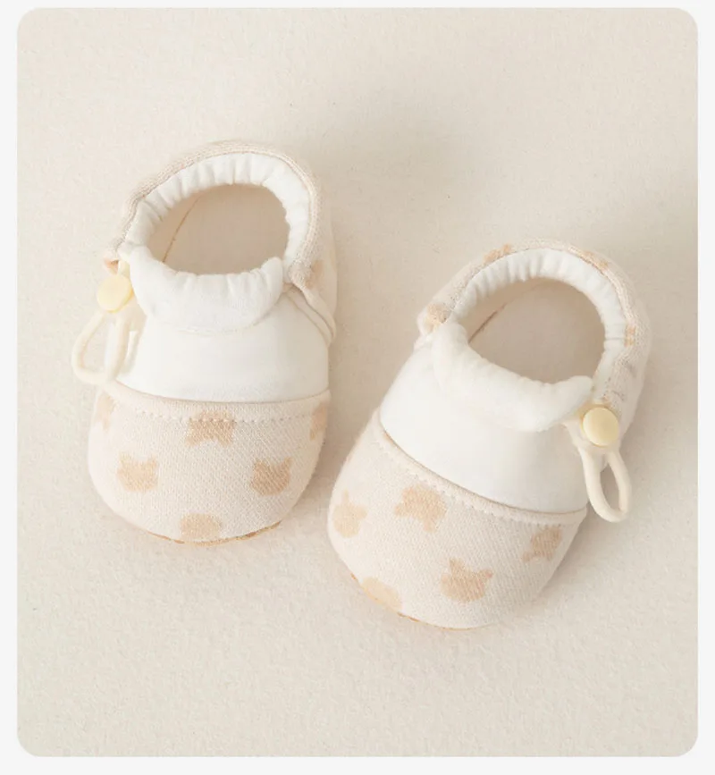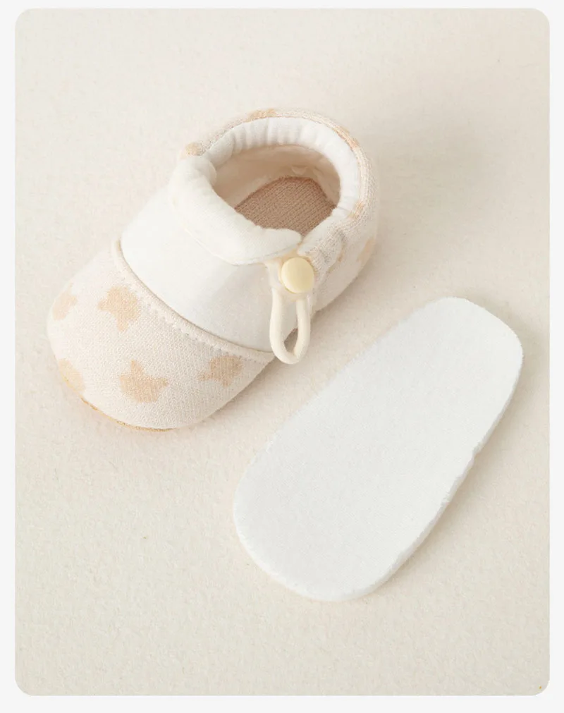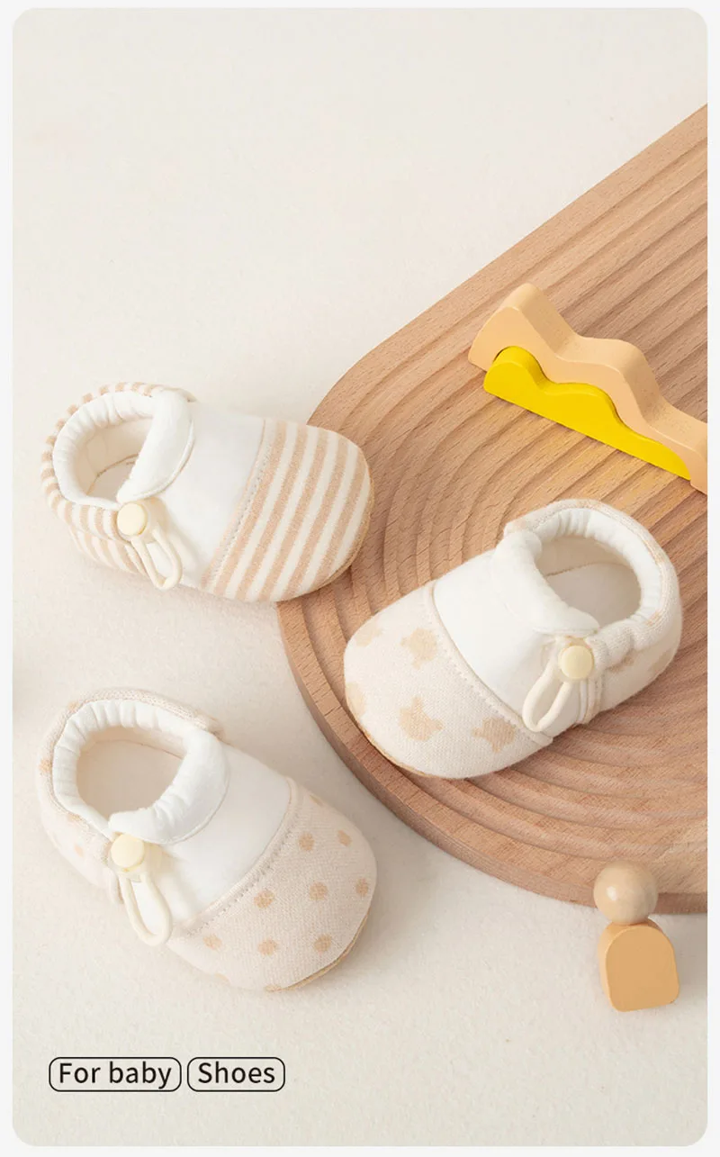 Los suaves tonos beige y los suaves patrones evocan la comodidad orgánica, alineando con la tendencia *"zapatos de bebé orgánicos"* para pieles sensibles.