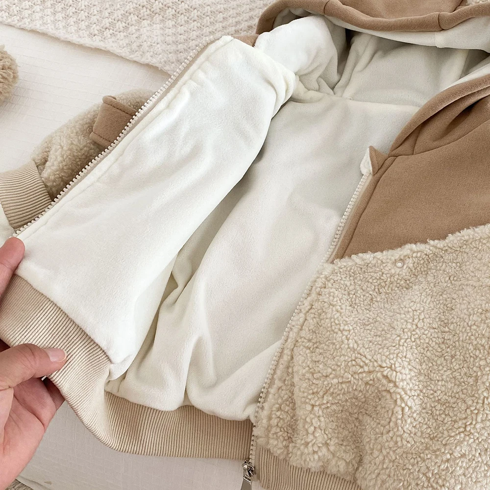 Comprar MILANCEL Otoño Invierno chaquetas con capucha para niños 1-6Y niñas lindo muñeco oso abrigo niños forro de piel prendas de vestir gruesas sueltas Tops casuales