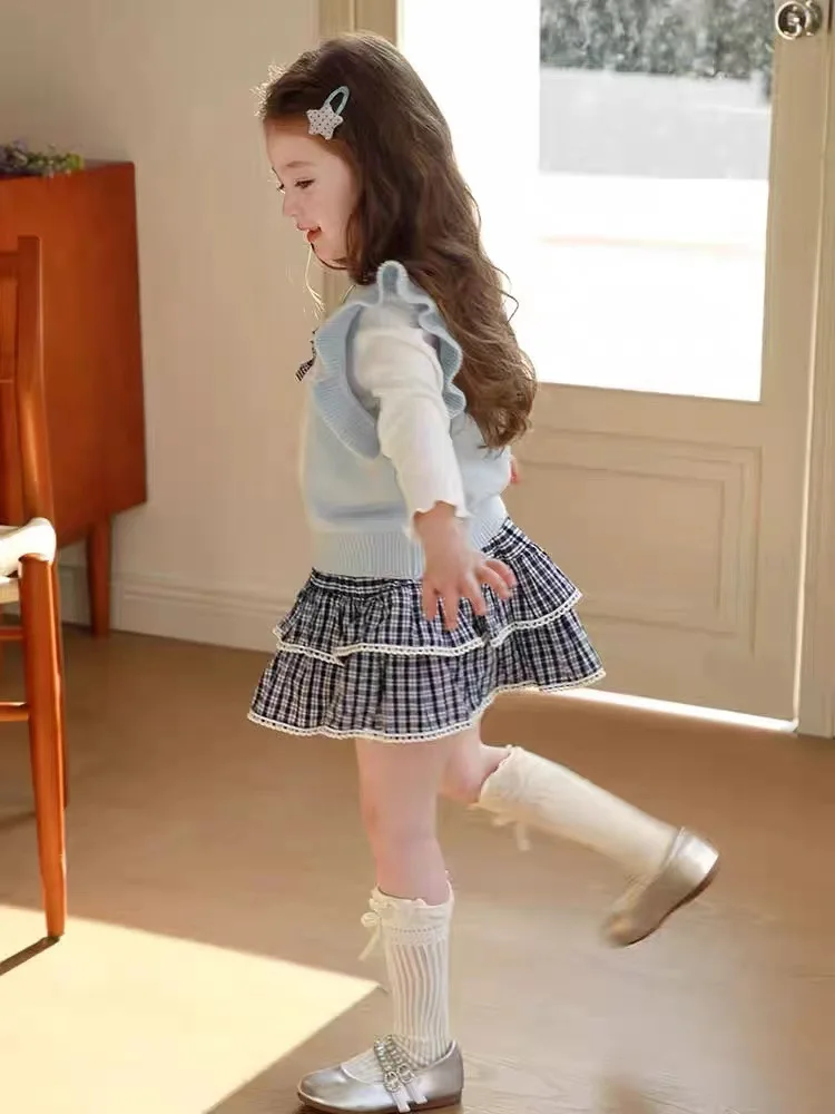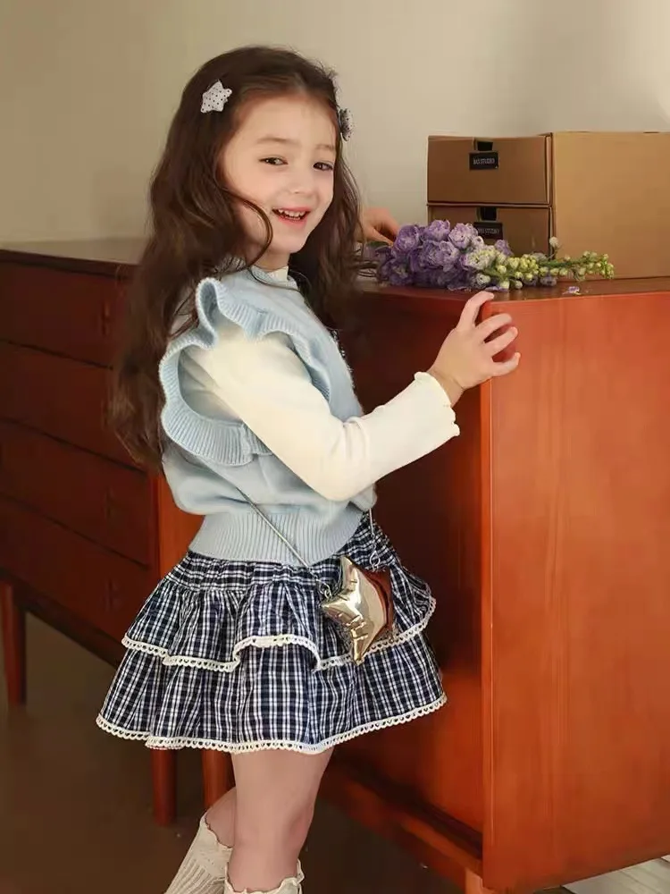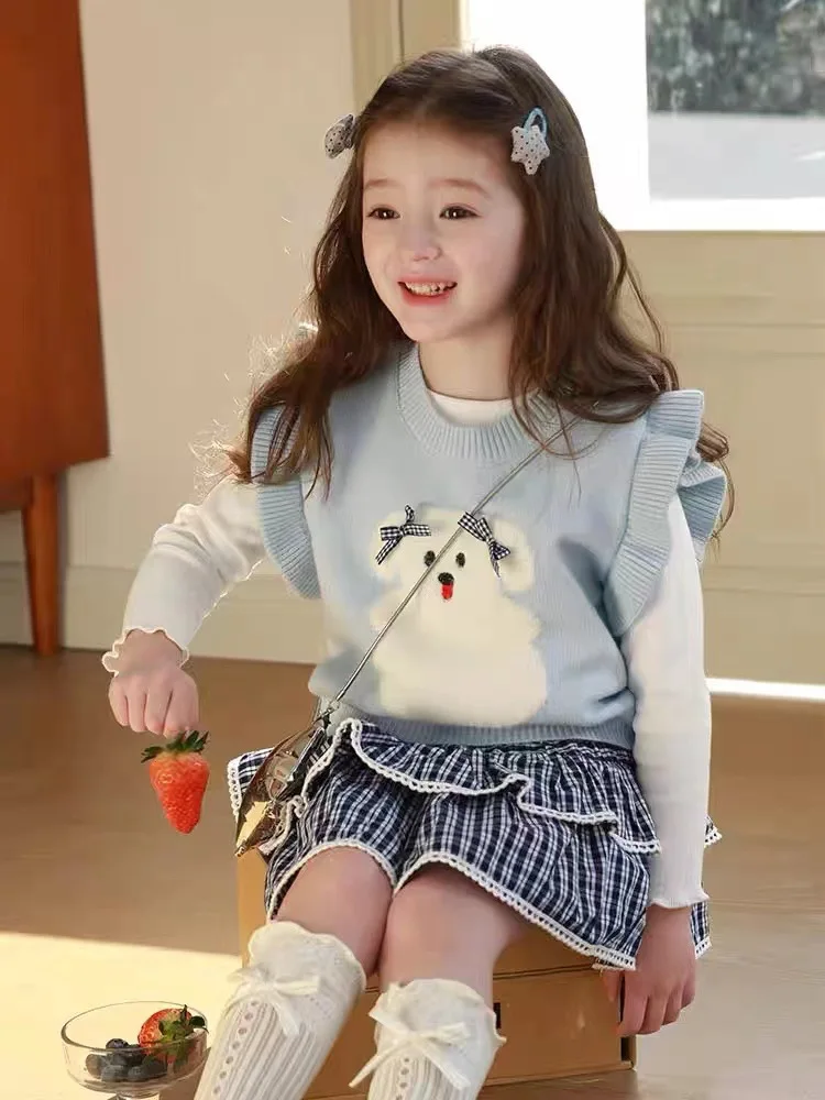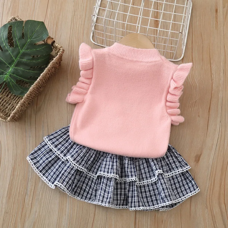 MILANCEL otoño nuevo conjunto de ropa para niñas lindo chaleco de punto y Falda plisada 2 uds conjunto de ropa de punto para niñas