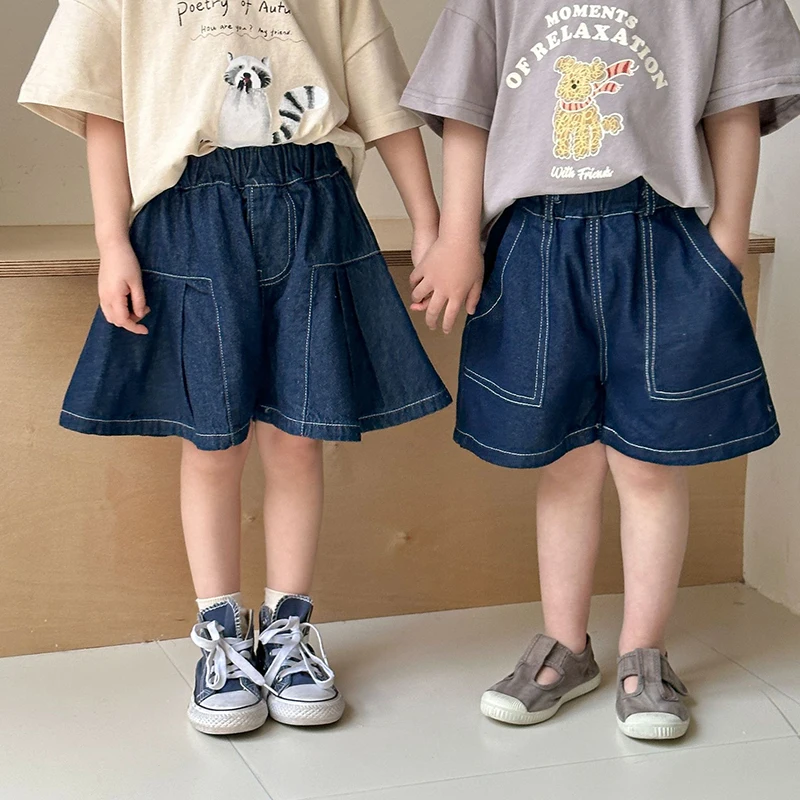 Comprar MILANCEL Pantalones cortos de mezclilla para niños de 1 a 8 años, faldas para niñas, pantalones cortos sueltos de verano para niños, pantalones casuales de estilo fino, Culotte para niños