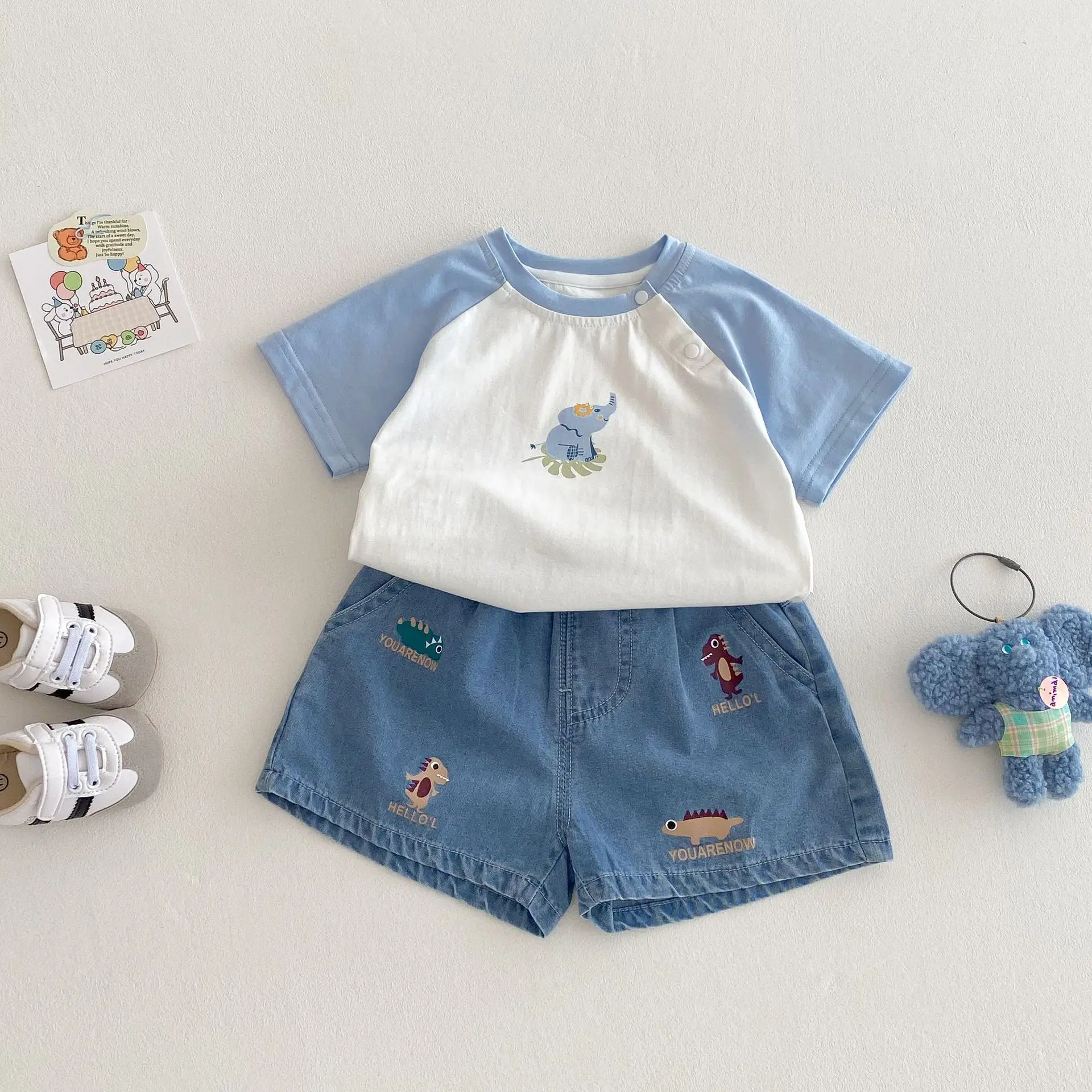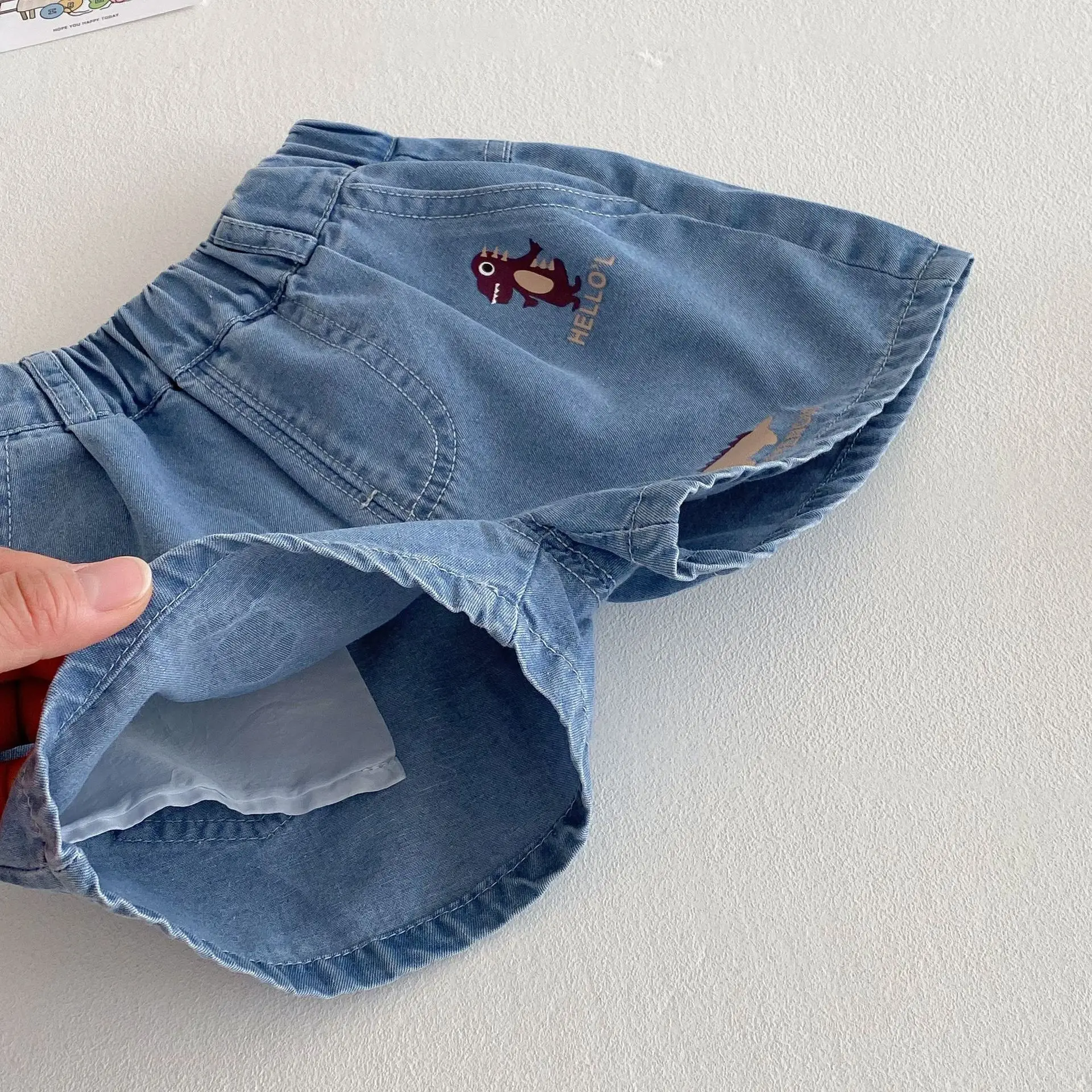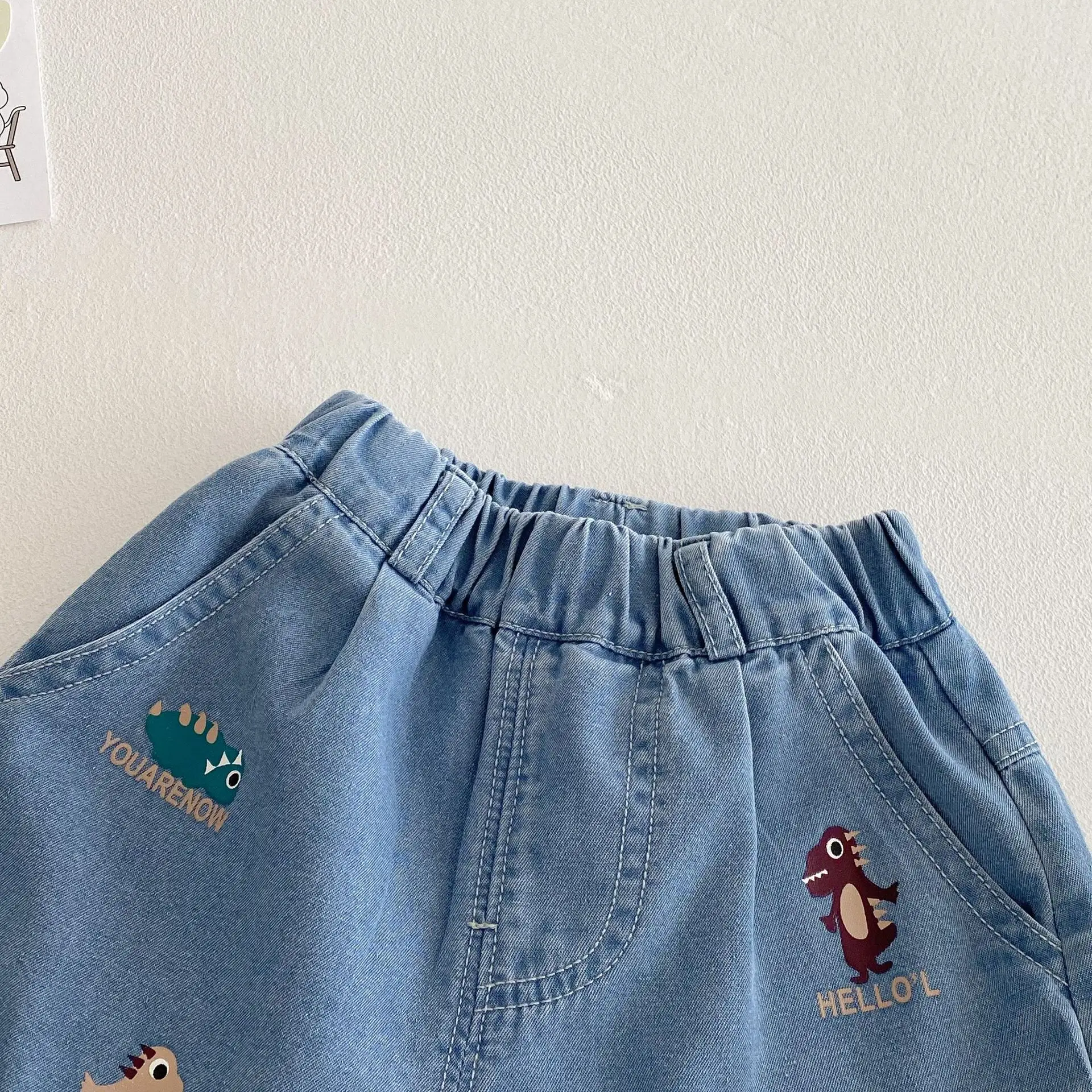 Comprar MILANCEL, pantalones cortos vaqueros con estilo para niños, nueva ropa de verano para bebés de 0 a 5 años, lindos pantalones cortos informales con dinosaurios bordados para niños