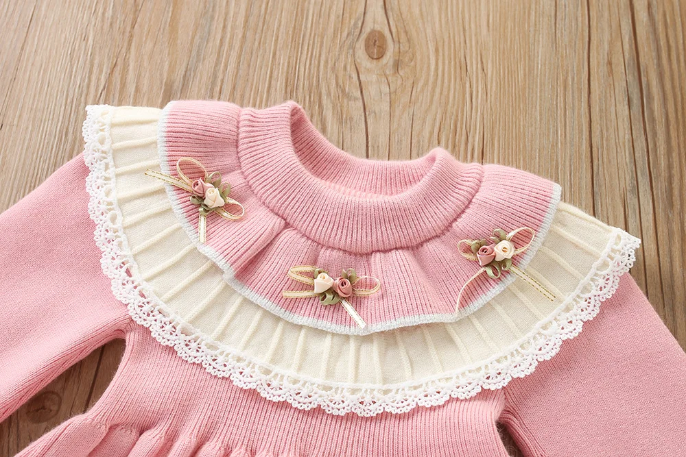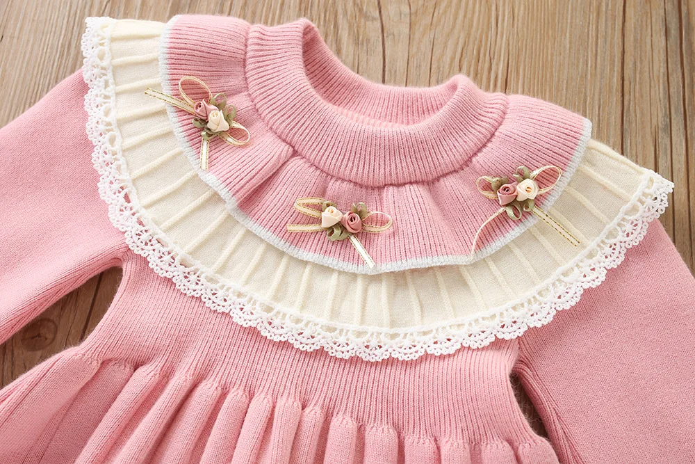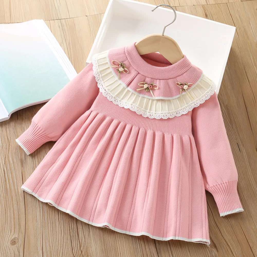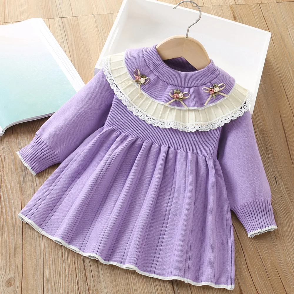 Comprar MILANCEL primavera otoño vestido suéter para niñas 0-5 Y vestido elegante de punto de flores de estilo coreano para niños traje para niños