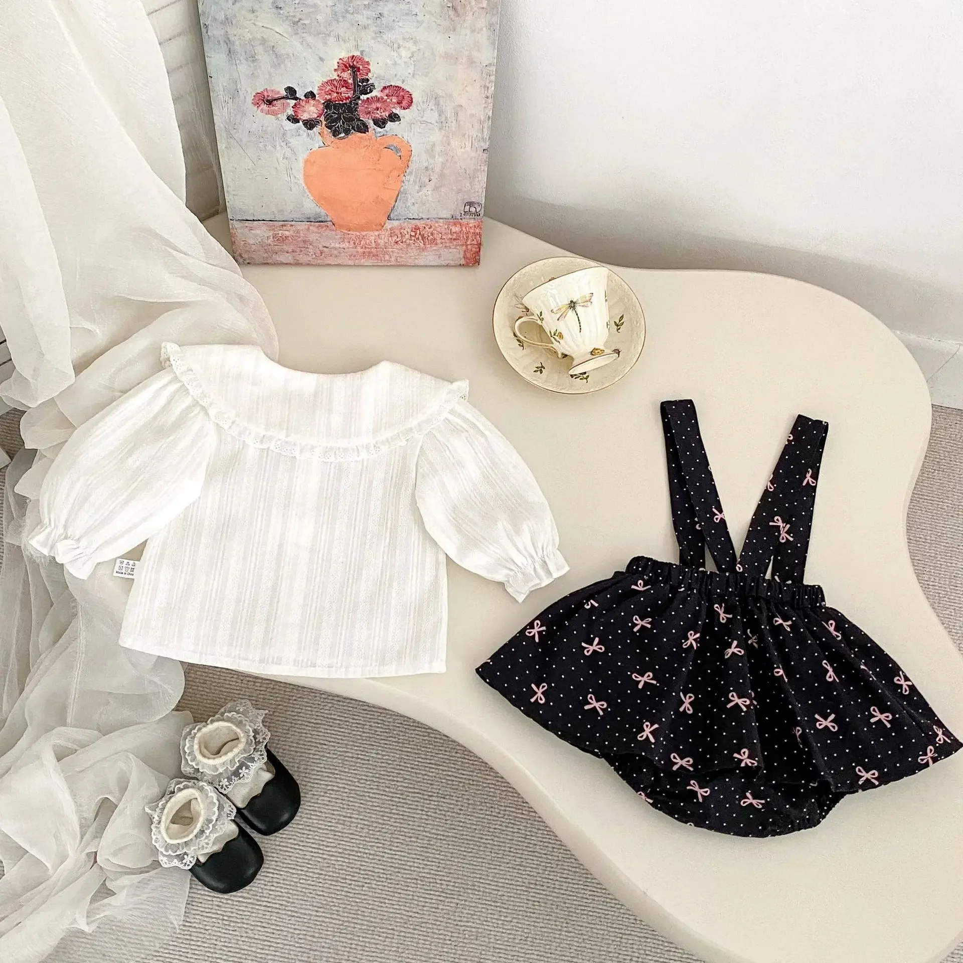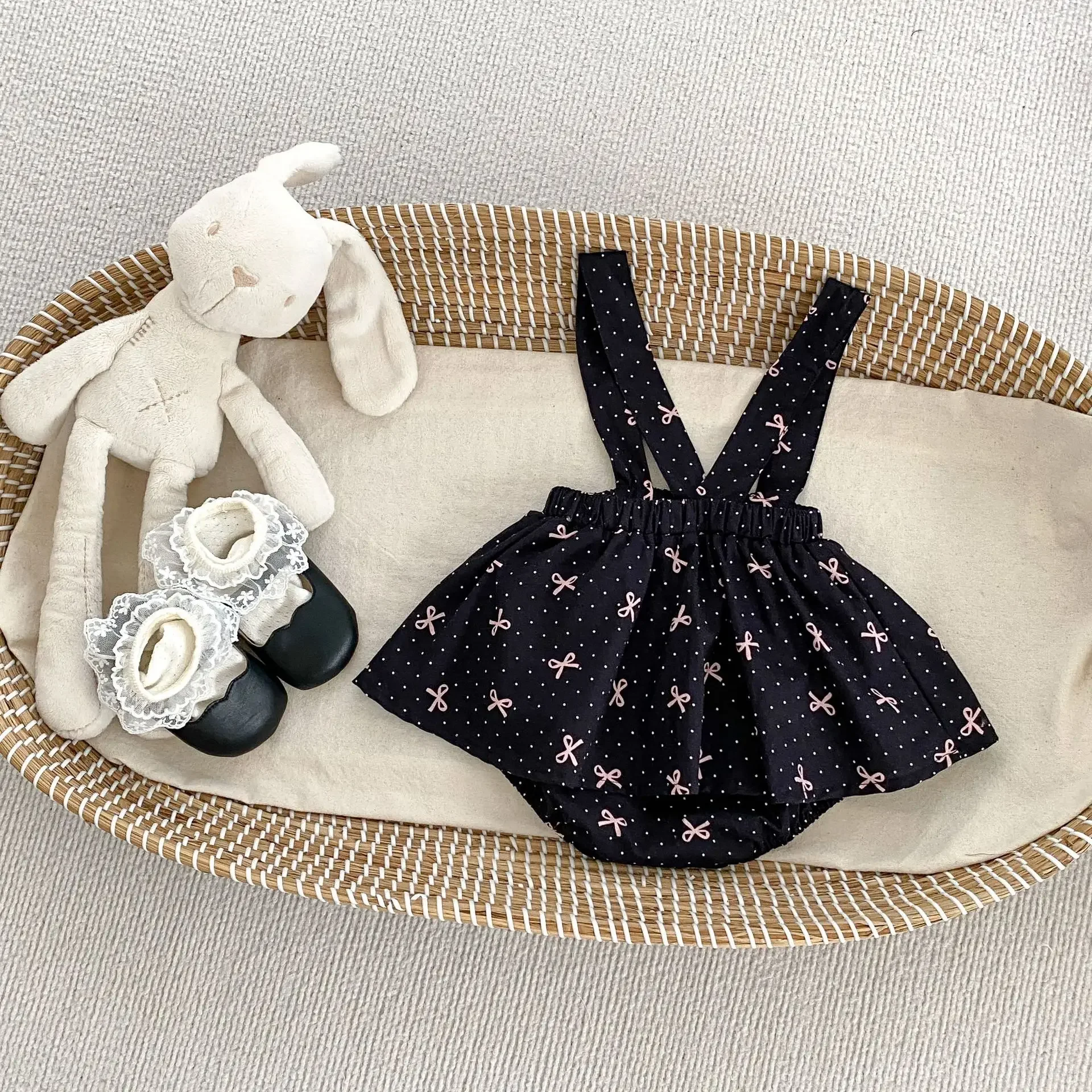 Comprar MILANCEL, ropa de primavera para niñas, mono con tirantes de 0 a 3 años, tirantes con lazo y puntos, pantalones cortos infantiles de una pieza, falda, camisa opcional