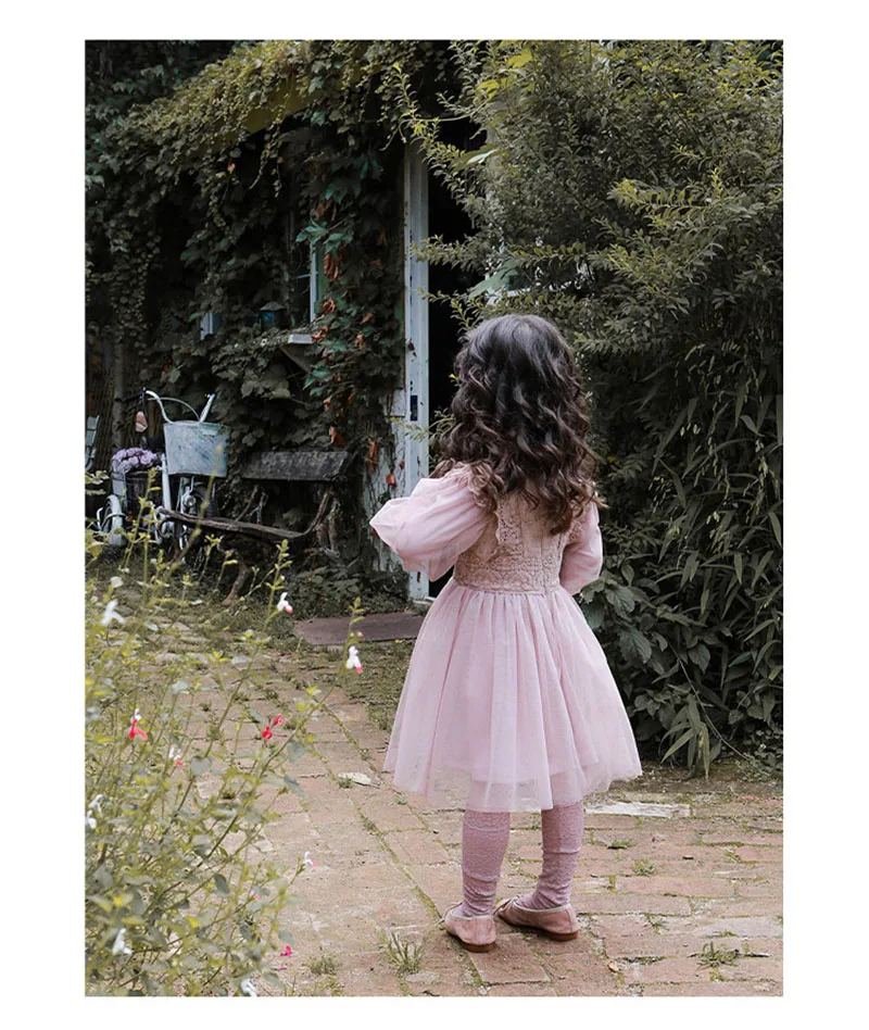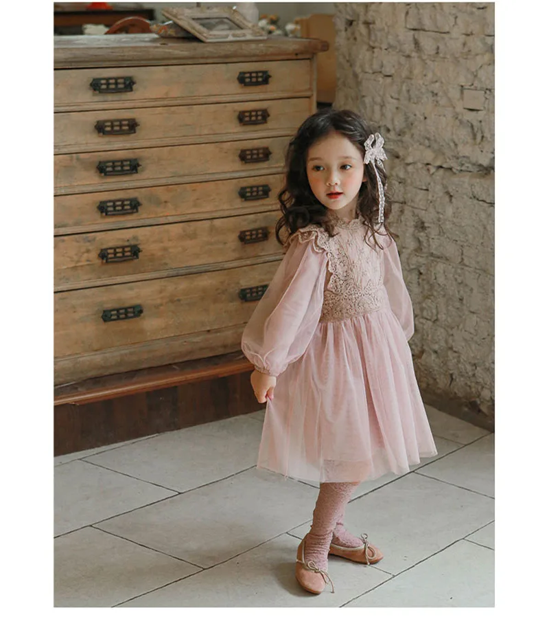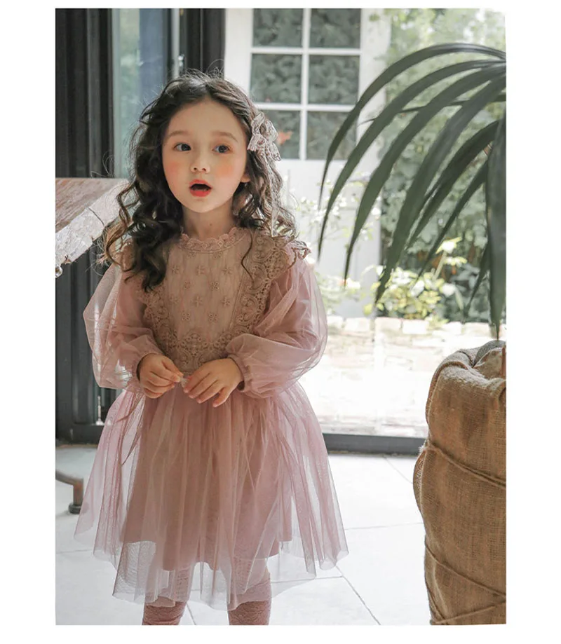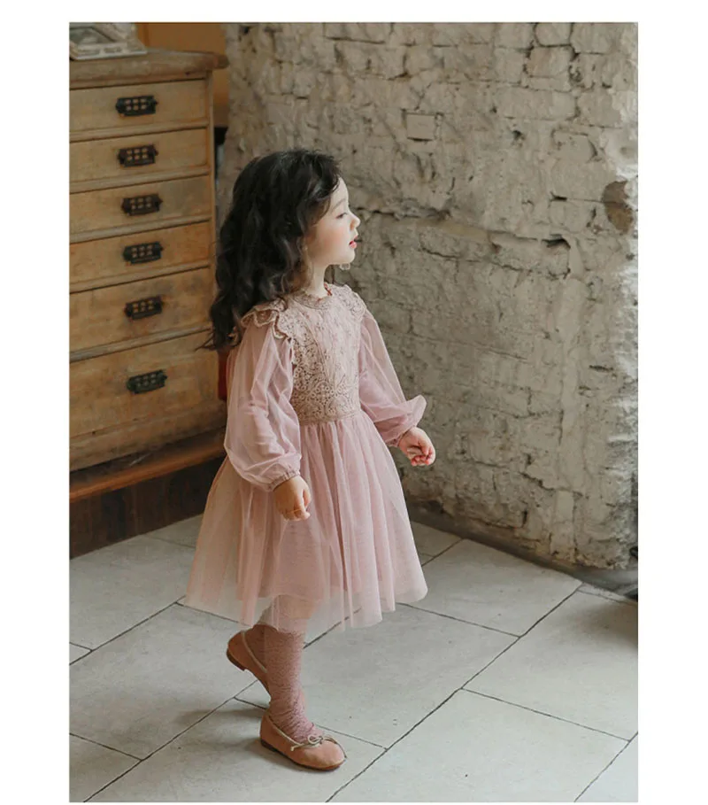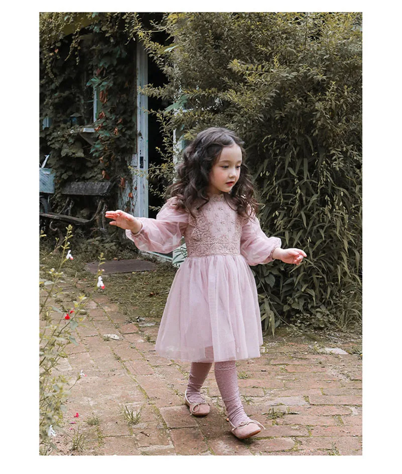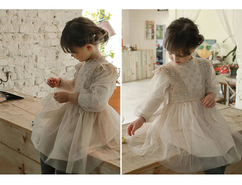 Comprar MILANCEL, ropa de primavera para niñas, vestido de princesa con mangas acampanadas, bonito vestido de tul con cuello de encaje para niños de 2 a 8 años