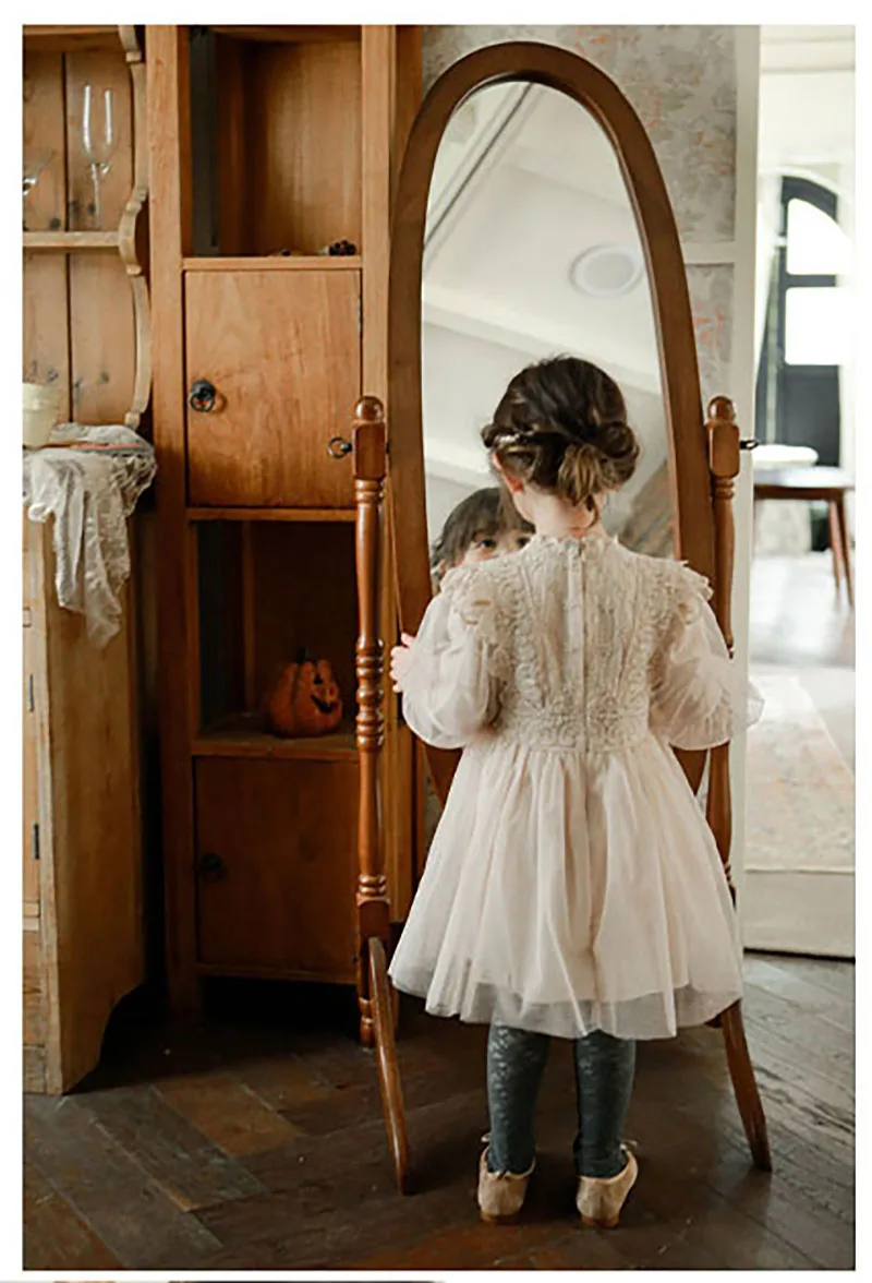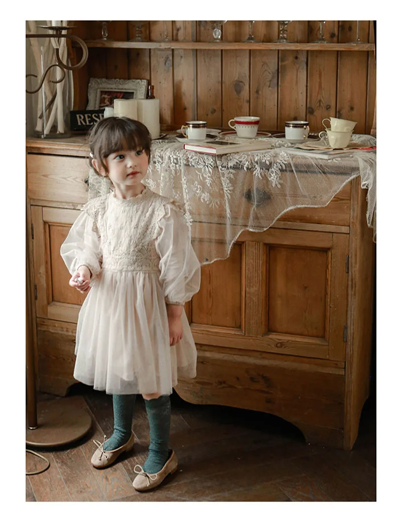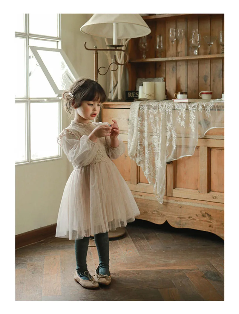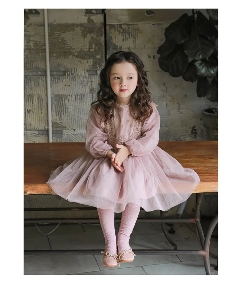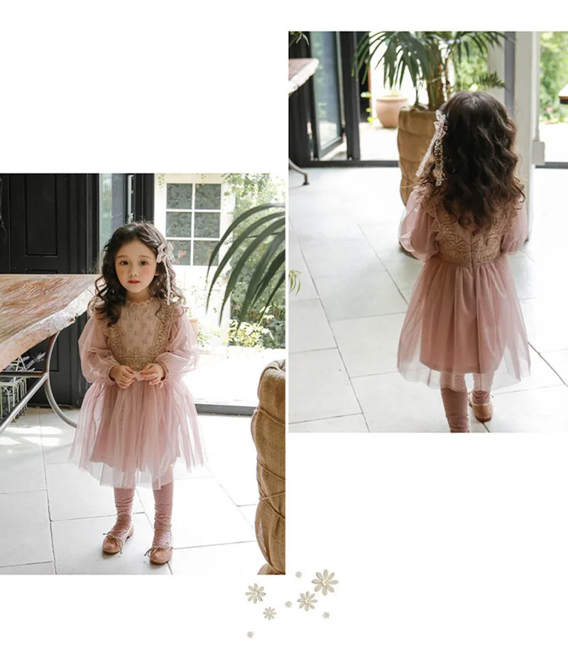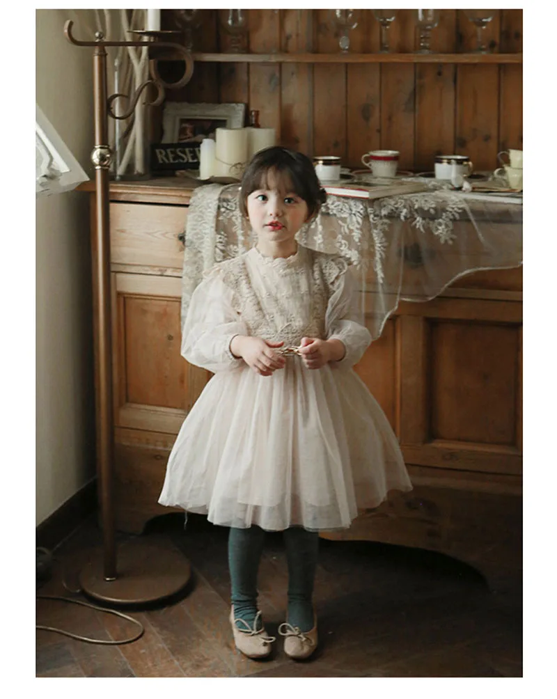 Comprar MILANCEL, ropa de primavera para niñas, vestido de princesa con mangas acampanadas, bonito vestido de tul con cuello de encaje para niños de 2 a 8 años