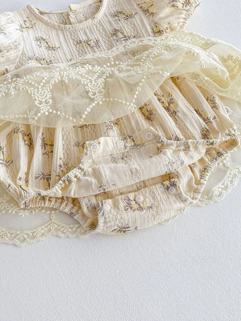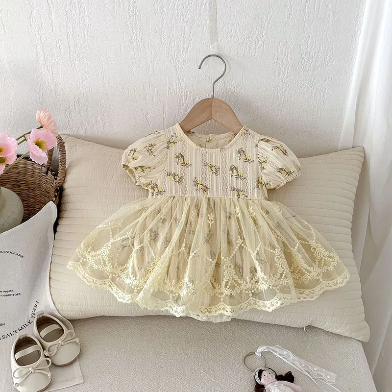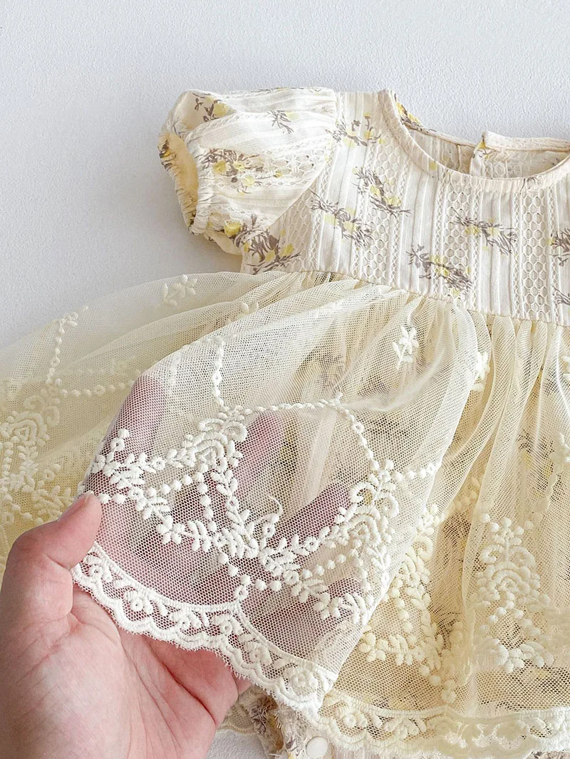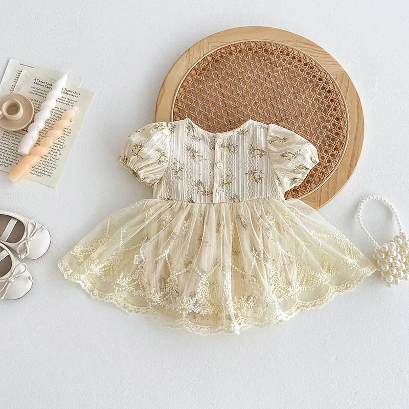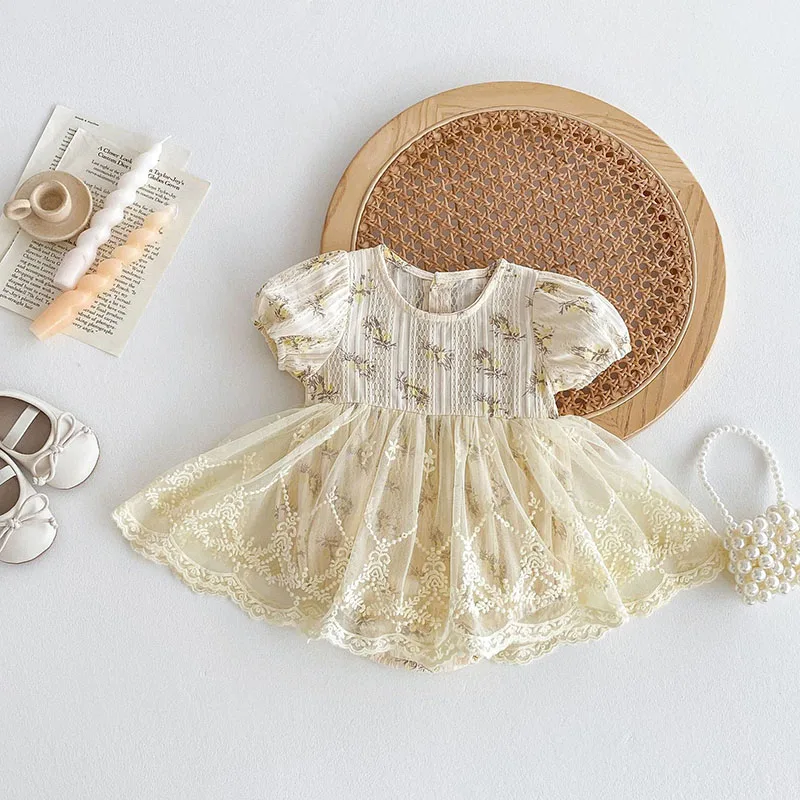 Comprar MILANCEl, ropa de verano para bebé, mono bonito de cumpleaños para niñas pequeñas, vestido de princesa Floral de encaje, falda de malla bordada para niños pequeños