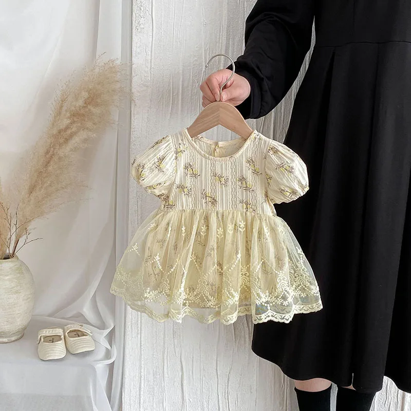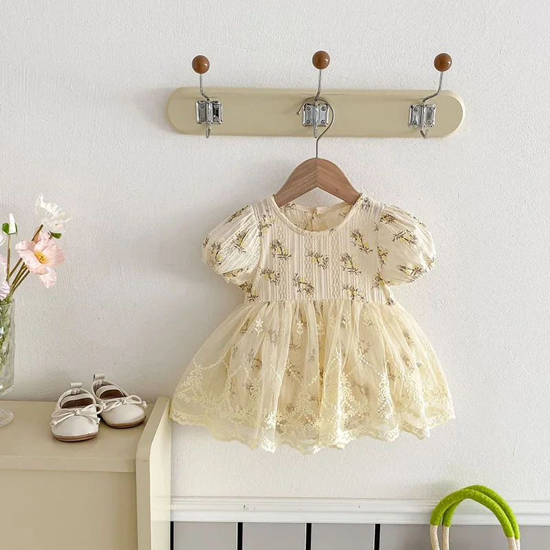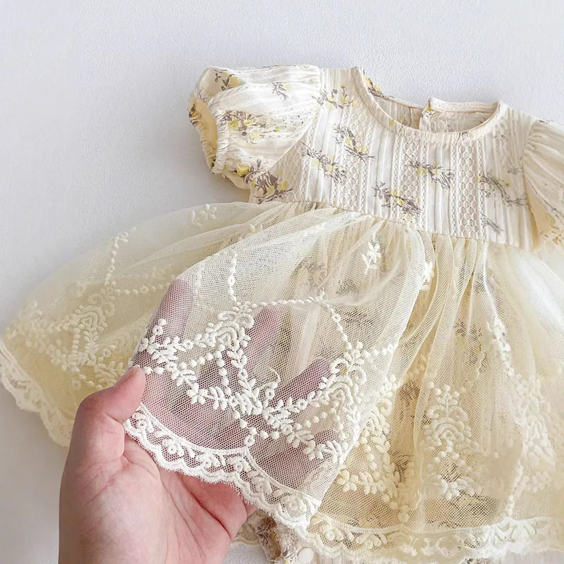 Comprar MILANCEl, ropa de verano para bebé, mono bonito de cumpleaños para niñas pequeñas, vestido de princesa Floral de encaje, falda de malla bordada para niños pequeños