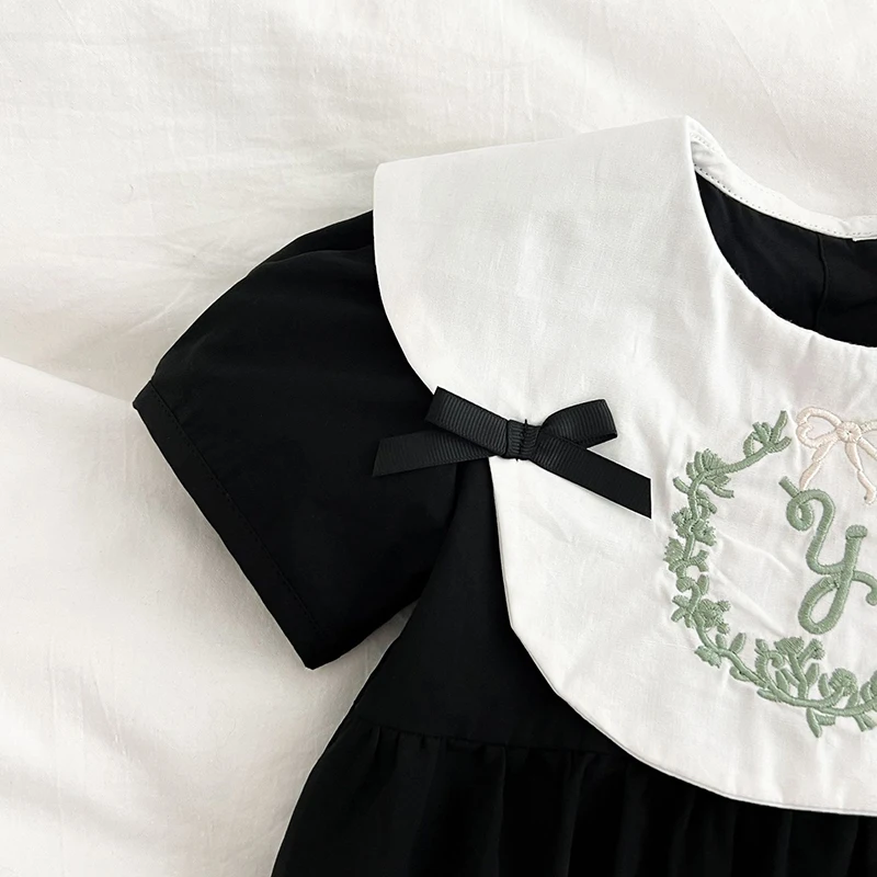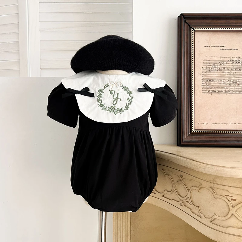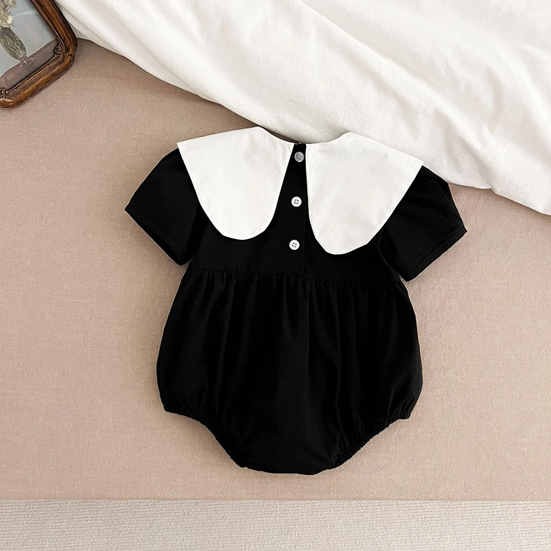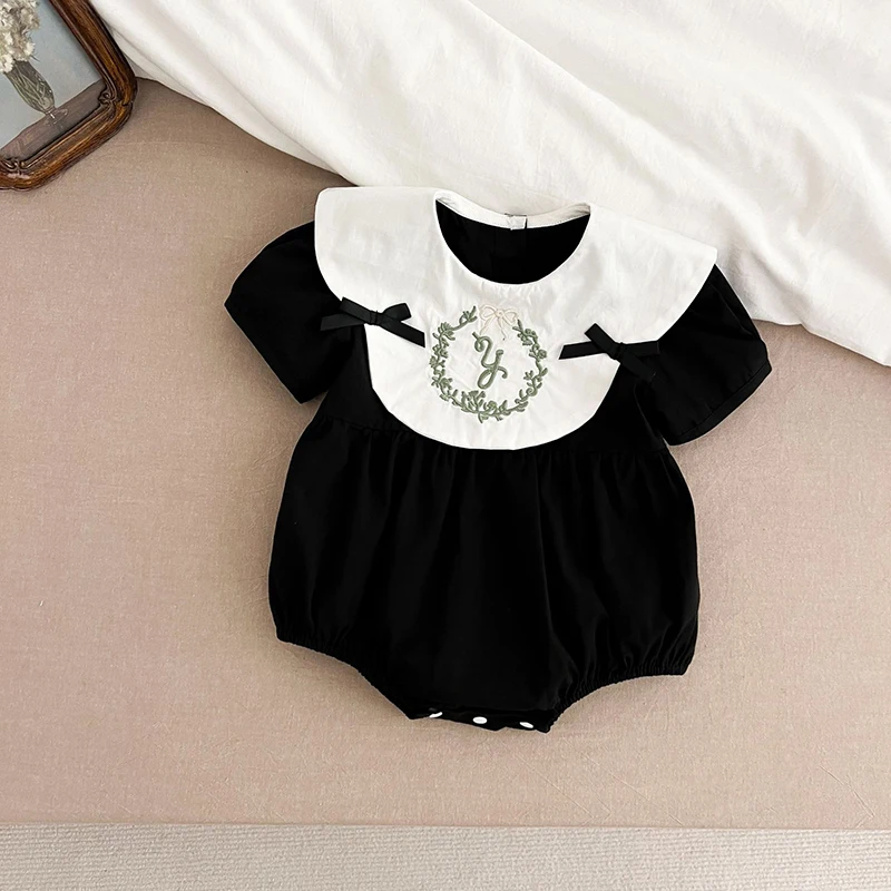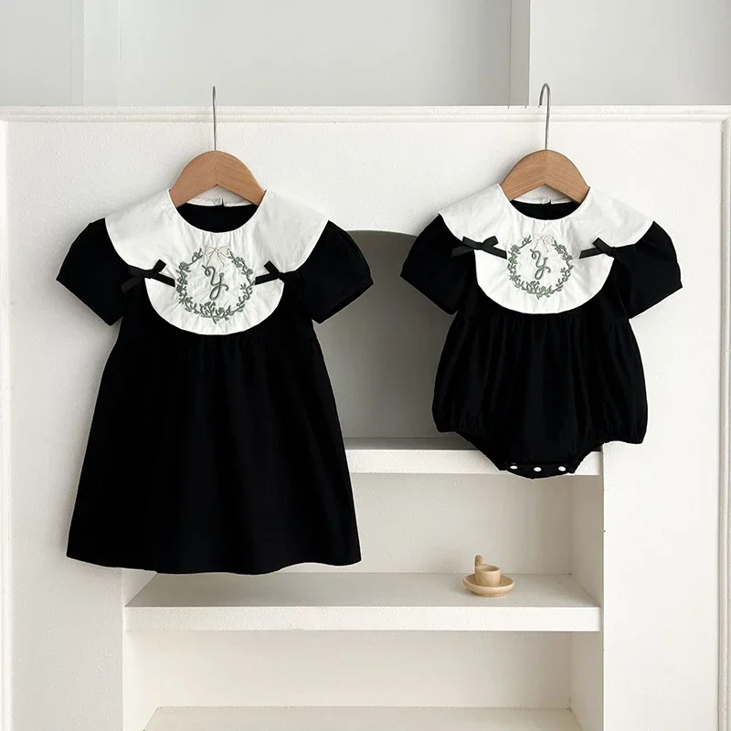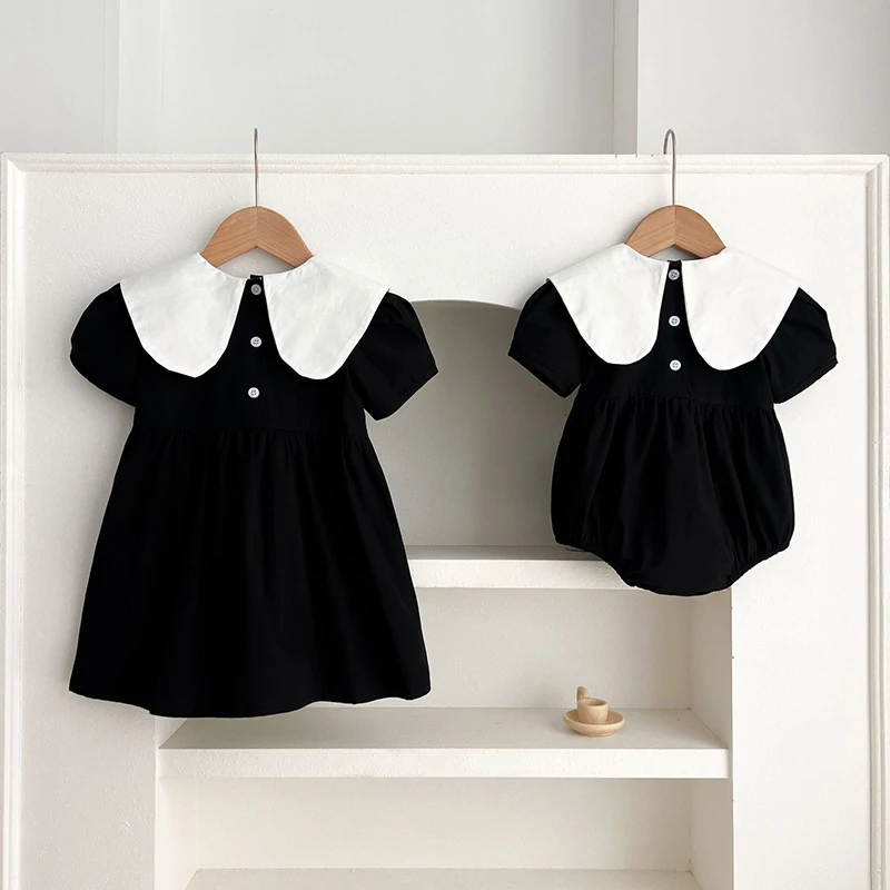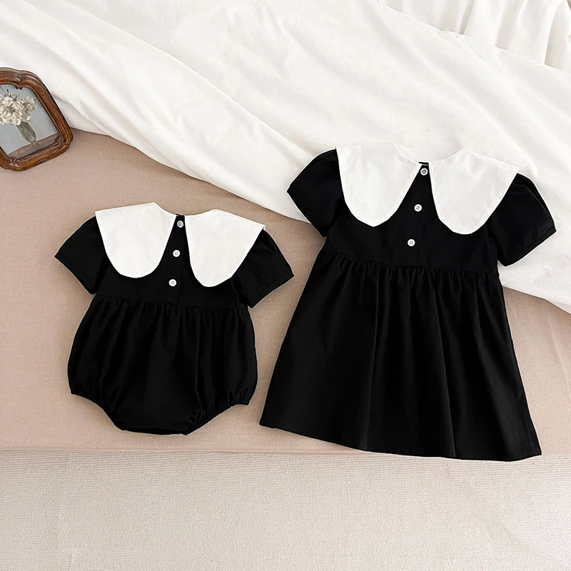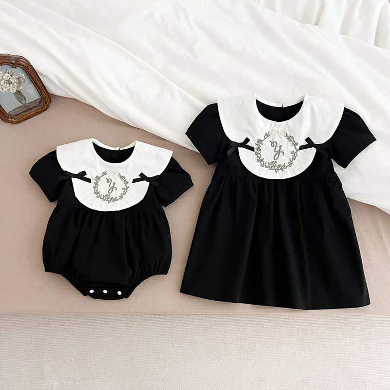 1.Diseño de moda: el gran cuello vuelto blanco con exquisitos patrones de bordado, combinado con la clásica combinación de colores blanco y negro, crea un estilo moderno y elegante similar a una princesa.2.Idoneidad estacional: ideal para el verano, fabricado con materiales transpirables para mantener a los niños frescos y cómodos.3.Trajes de hermana: perfectos para hermanas o niños mayores, lo que permite looks lindos y coordinados.4.Practicidad: los mamelucos cuentan con cierres de botón a presión en la parte inferior, lo que hace que cambiar el pañal sea rápido y fácil.5. Artesanía de alta calidad: el bordado fino y las costuras bien hechas garantizan durabilidad y una apariencia de alta gama.