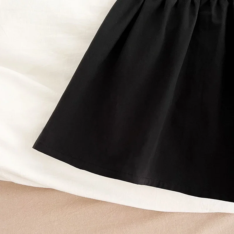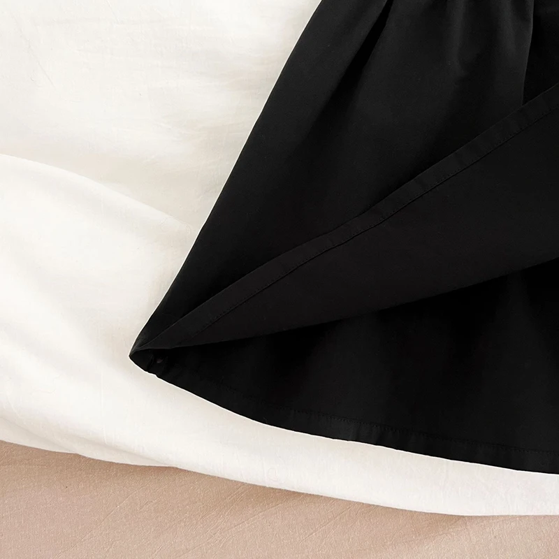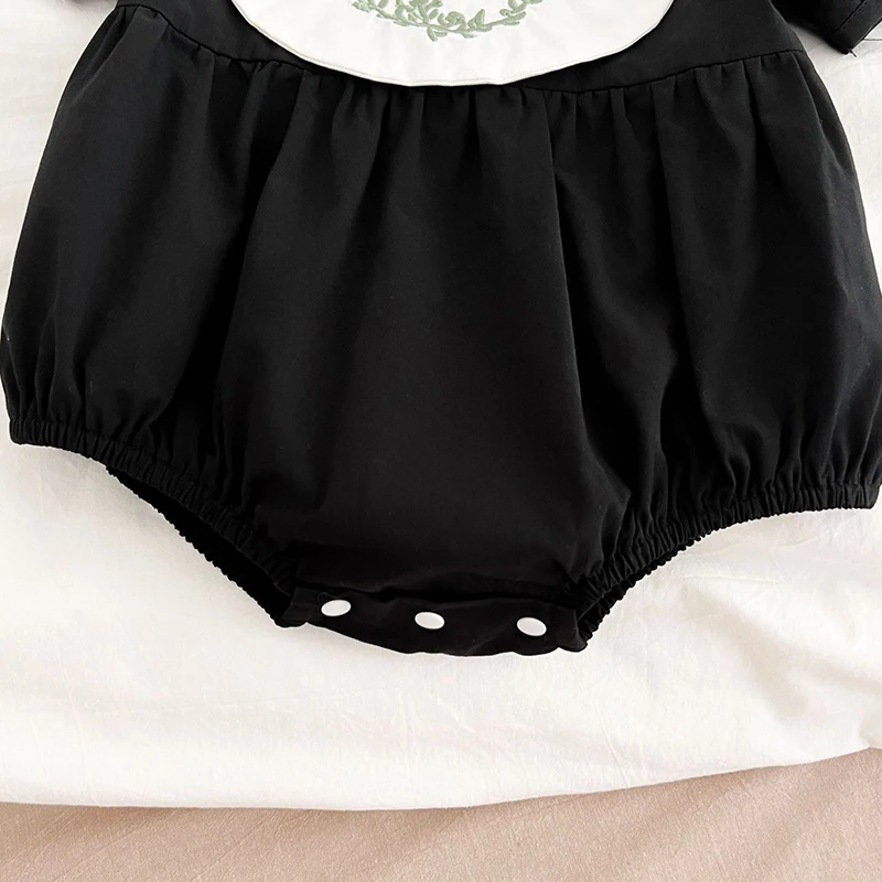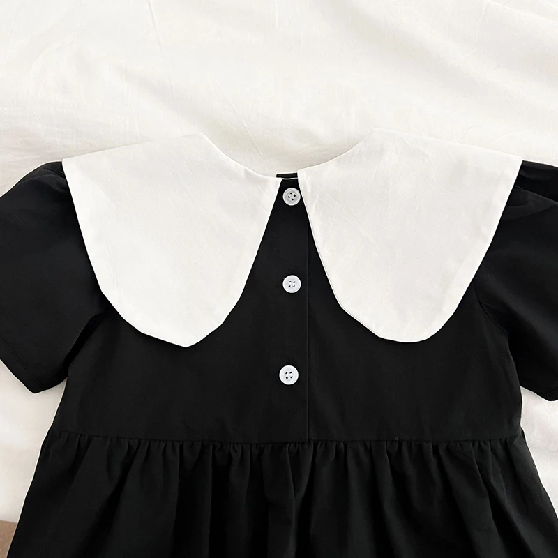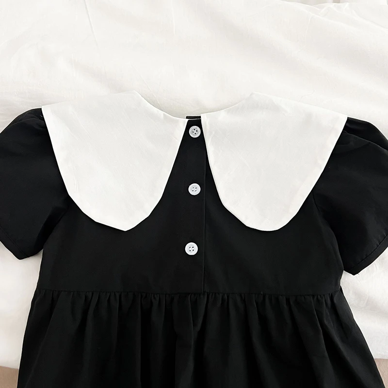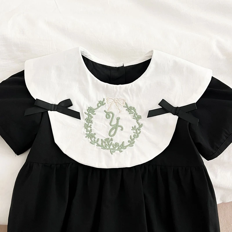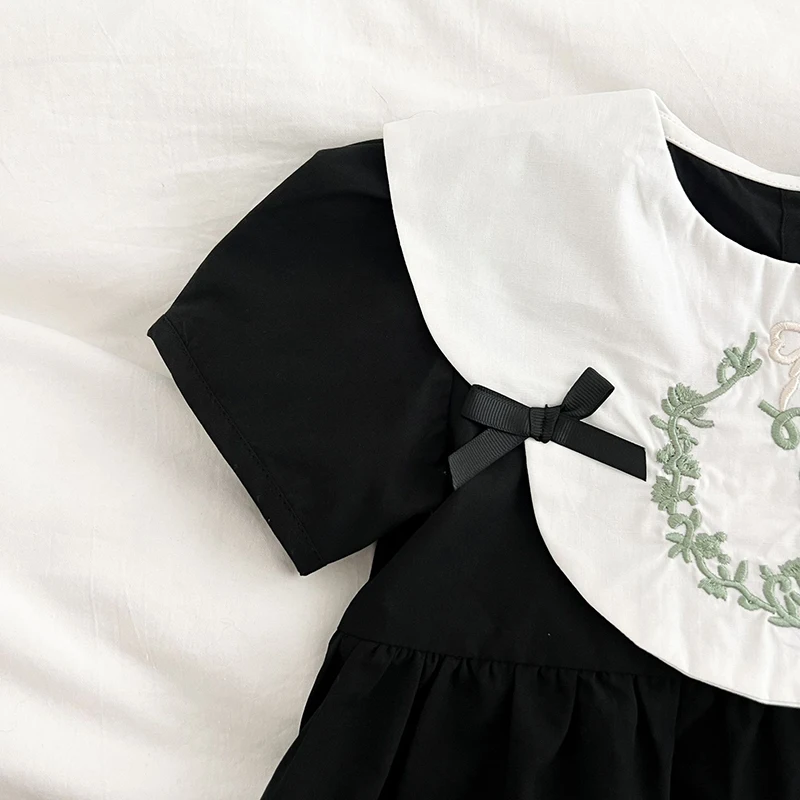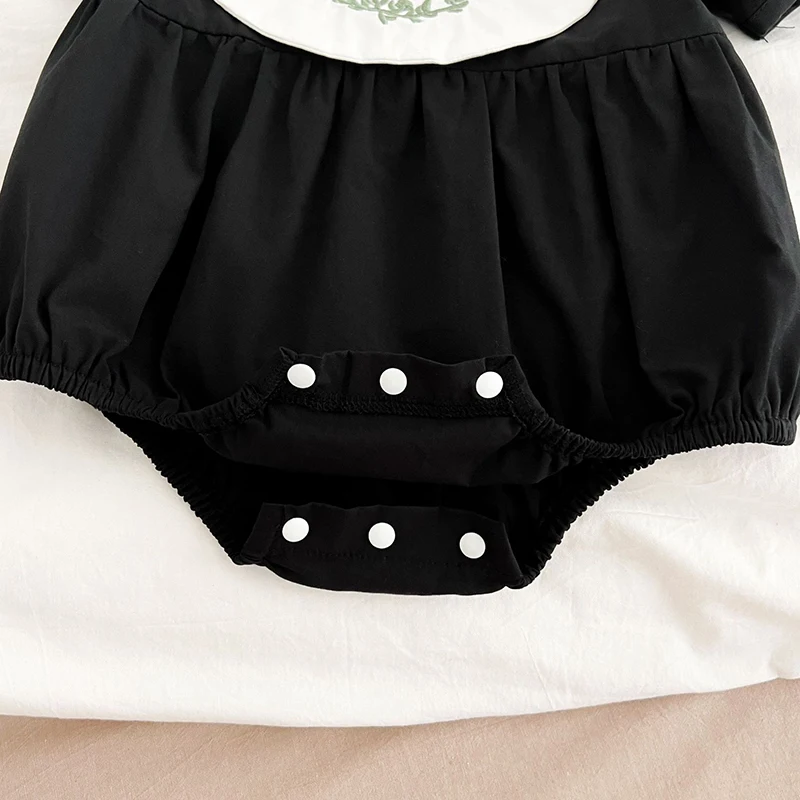 1.Diseño de moda: el gran cuello vuelto blanco con exquisitos patrones de bordado, combinado con la clásica combinación de colores blanco y negro, crea un estilo moderno y elegante similar a una princesa.2.Idoneidad estacional: ideal para el verano, fabricado con materiales transpirables para mantener a los niños frescos y cómodos.3.Trajes de hermana: perfectos para hermanas o niños mayores, lo que permite looks lindos y coordinados.4.Practicidad: los mamelucos cuentan con cierres de botón a presión en la parte inferior, lo que hace que cambiar el pañal sea rápido y fácil.5. Artesanía de alta calidad: el bordado fino y las costuras bien hechas garantizan durabilidad y una apariencia de alta gama.