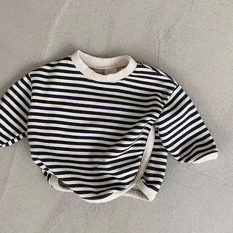 Comprar MILANCEL-Sudadera con capucha para bebé, suéter Vintage de cuello alto con forro polar para niña, retales a rayas, Tops de invierno