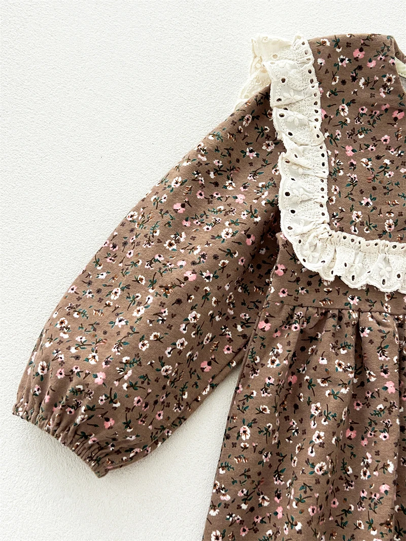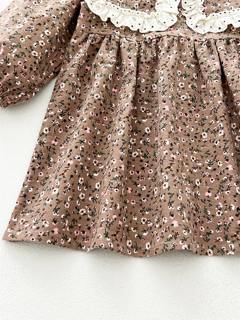 MILANCEL, vestido Floral de manga larga de estilo coreano para niñas de 2 a 6 años, vestido informal con cuello de solapa grande para niños, ropa de primavera para chico - imagen 5