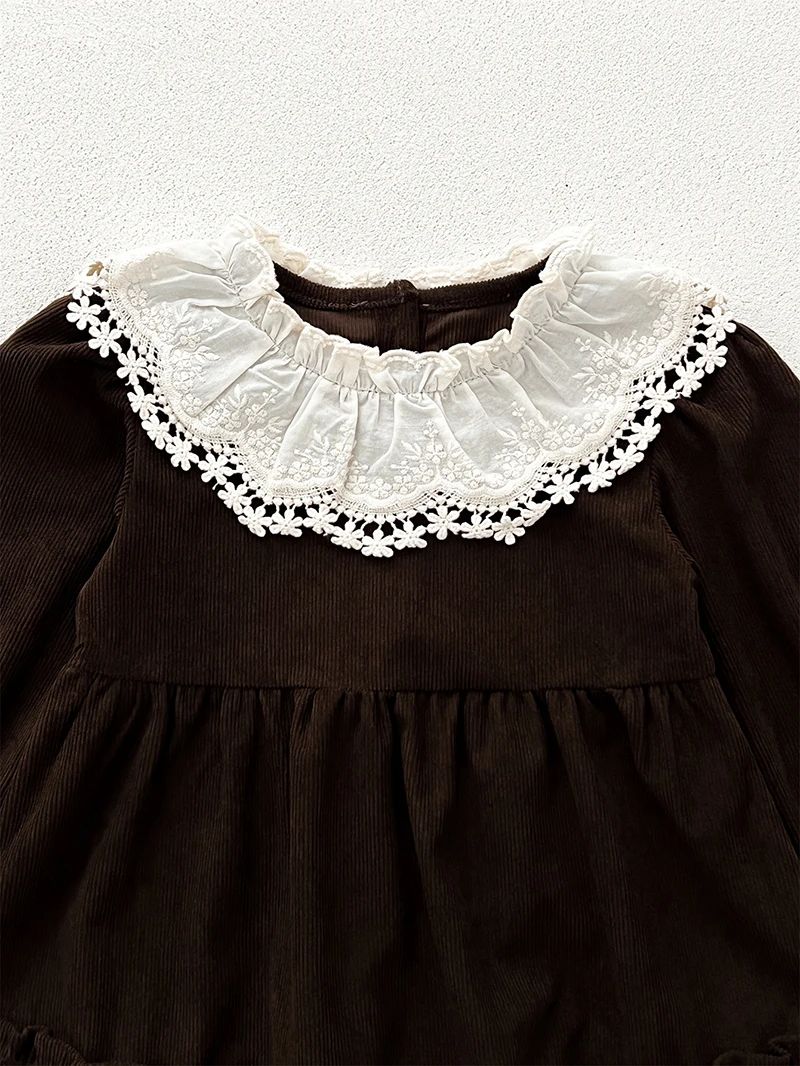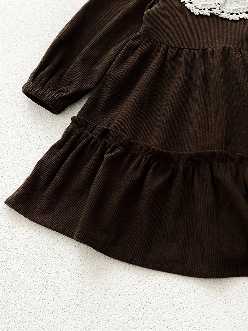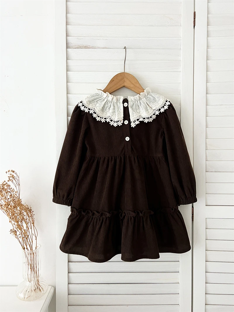 Comprar MILANCEL-vestido de pana de manga larga con cuello de volantes para niña, ropa para niño de 2 a 6 años, primavera y otoño