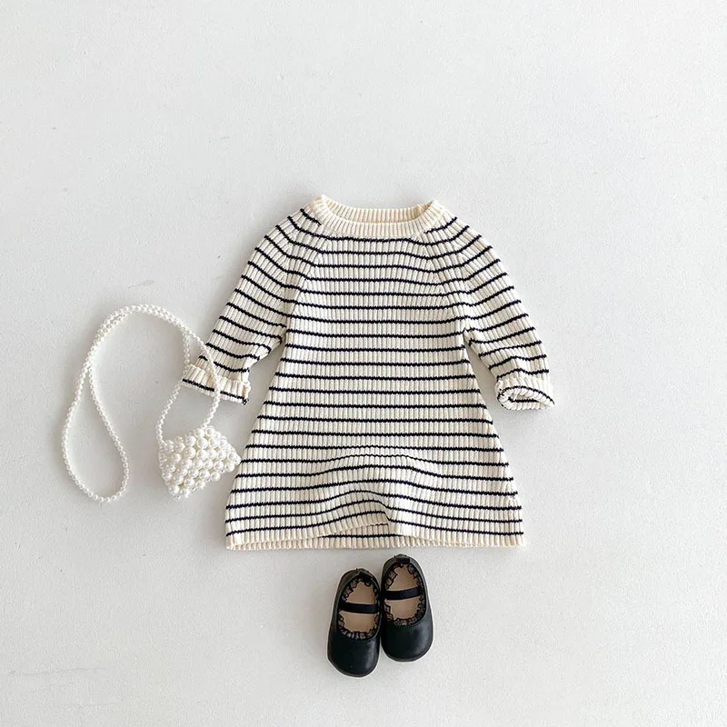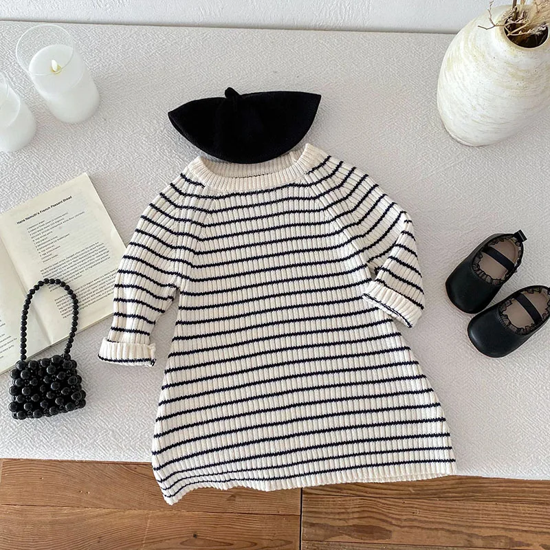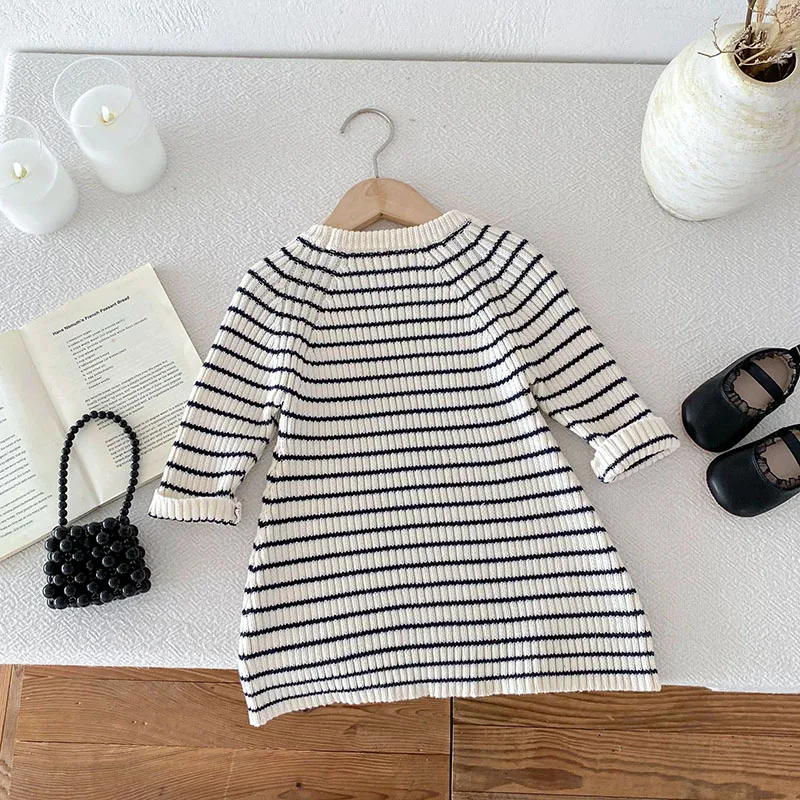 Comprar MILANCEL, vestidos tejidos para niñas de 1 a 6 años, vestido suéter versátil a rayas para niños, ropa para niños de primavera y otoño, traje para niñas