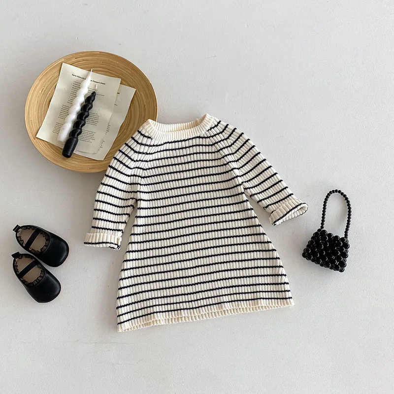 Comprar MILANCEL, vestidos tejidos para niñas de 1 a 6 años, vestido suéter versátil a rayas para niños, ropa para niños de primavera y otoño, traje para niñas