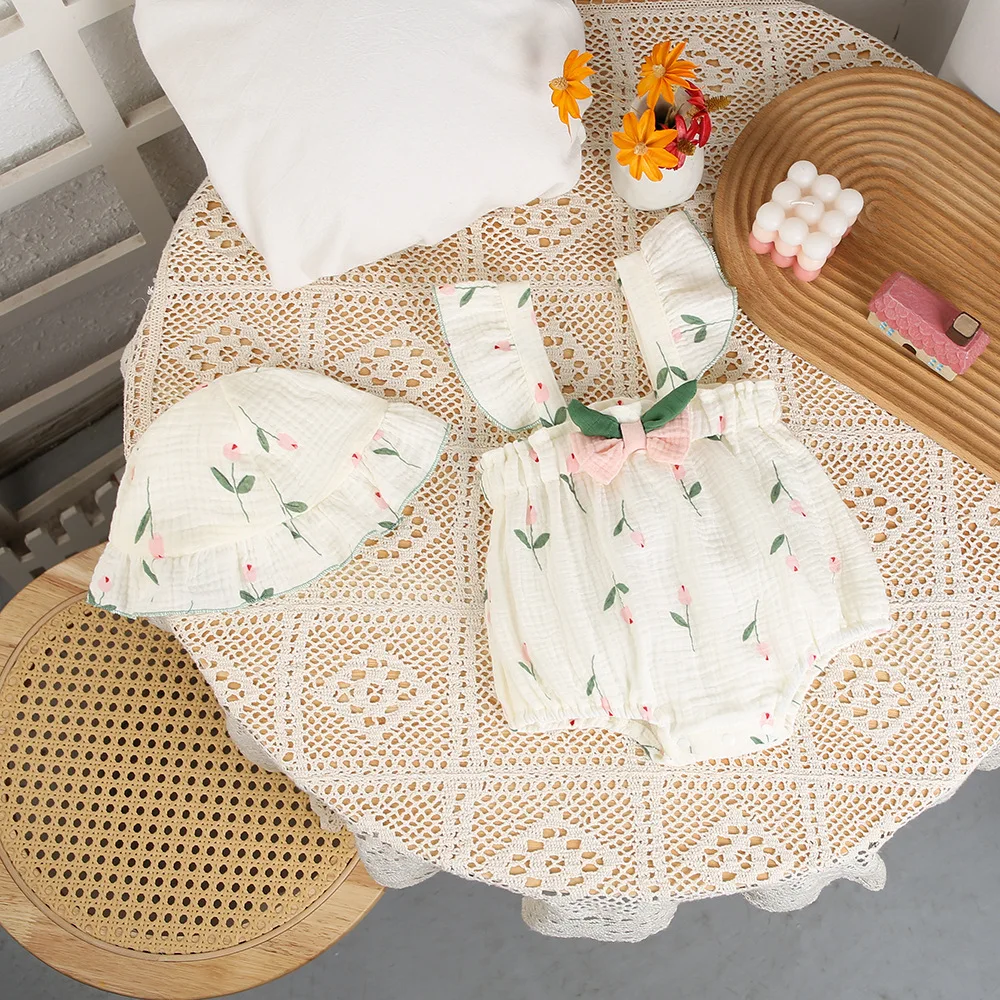 Comprar Milangel-body para bebé de 0 a 2 años, ropa de una pieza con sombrero, estampado de tulipanes