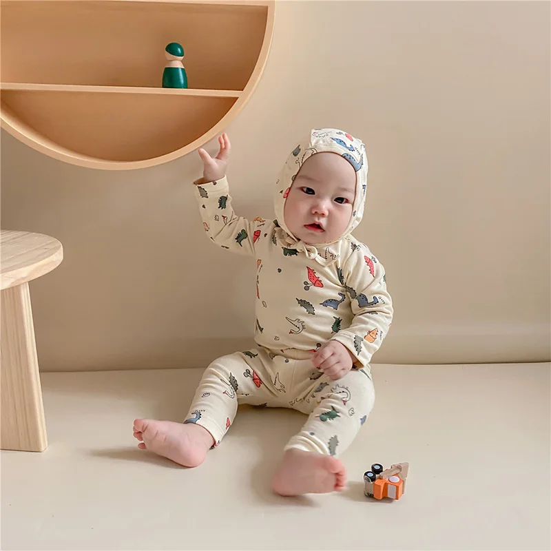 Milangel-body para bebé con estampado animal, conjunto de algodón para bebé, ropa interior con sombrero, Otoño, 2022