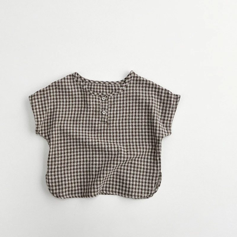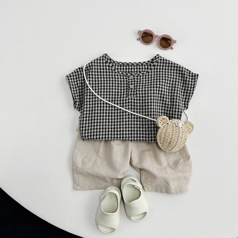 Comprar Milangel-Camiseta informal de algodón a cuadros para niños y niñas, Top fino, ropa de verano, novedad de 2024