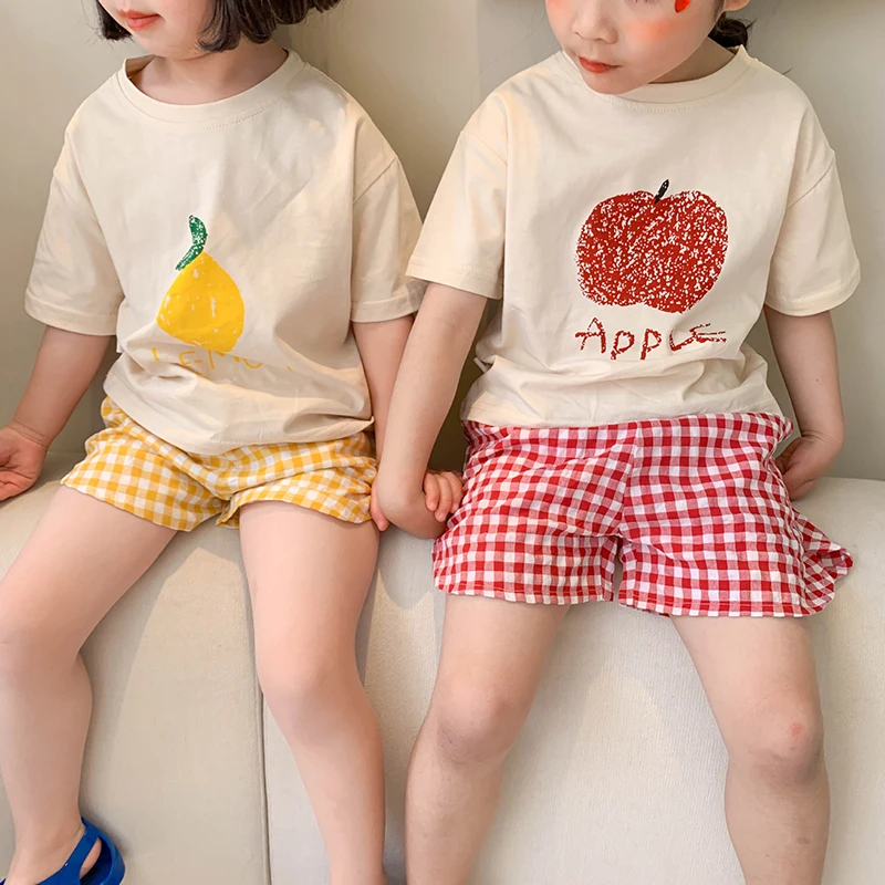 Comprar Milangel-Conjunto de 2 piezas para niños, traje con estampado de frutas, camisetas y pantalones cortos para niños y niñas, estilo coreano informal, novedad de verano 2022