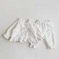 Comprar Milangel-Conjunto de pijama de franela para bebé, ropa de dormir con lazo de encaje, gruesa, para el hogar, 2 piezas