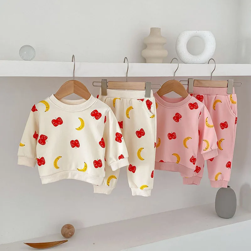 Comprar Milangel-Conjunto de ropa con estampado de plátano y manzana para niños, Sudadera con capucha, prendas de vestir, traje deportivo, 2 piezas