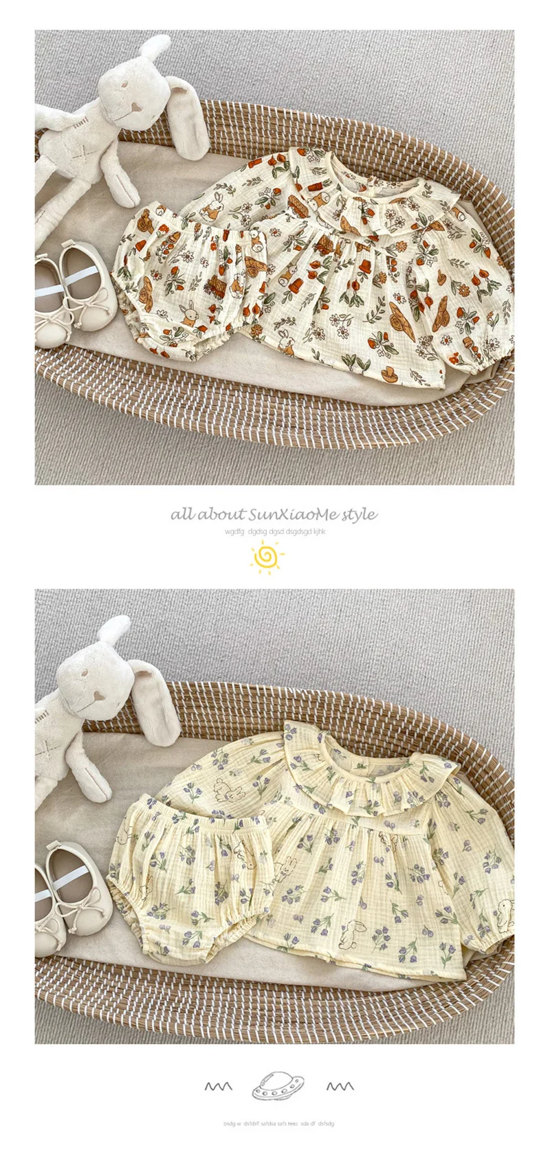 Comprar Milangel-Conjunto de ropa para niñas, blusa y bombacho con estampado de conejo, de lino doble, 2 piezas
