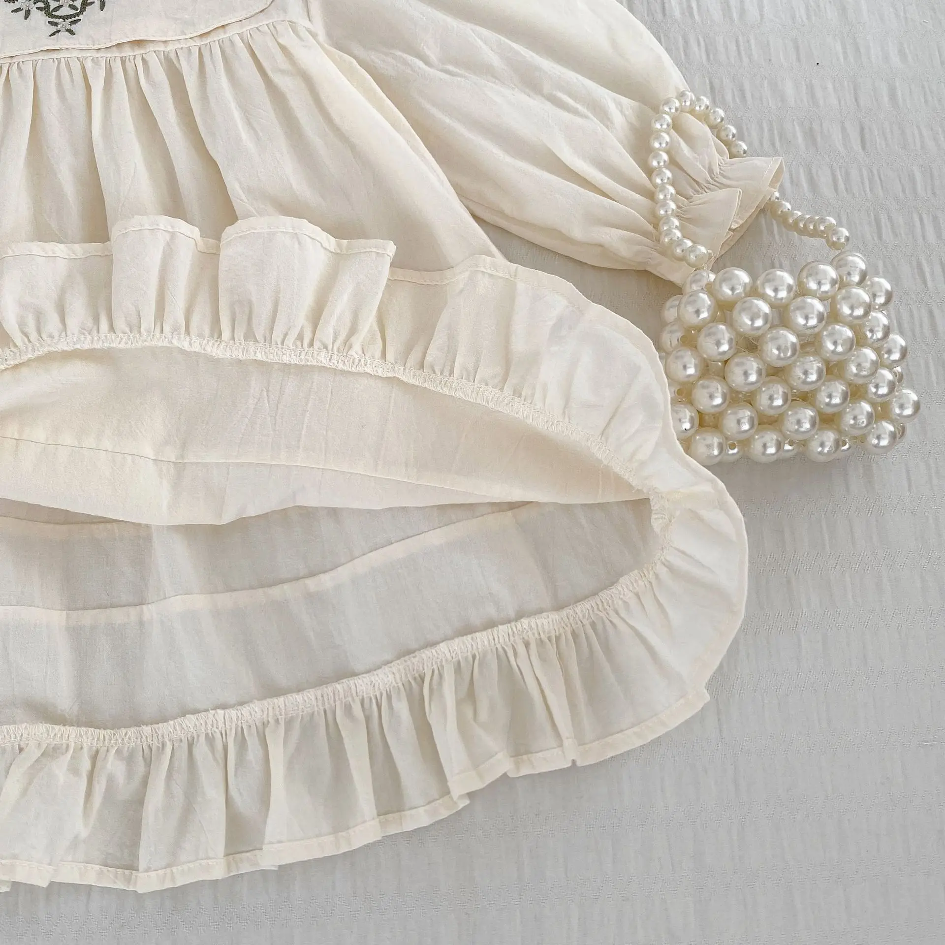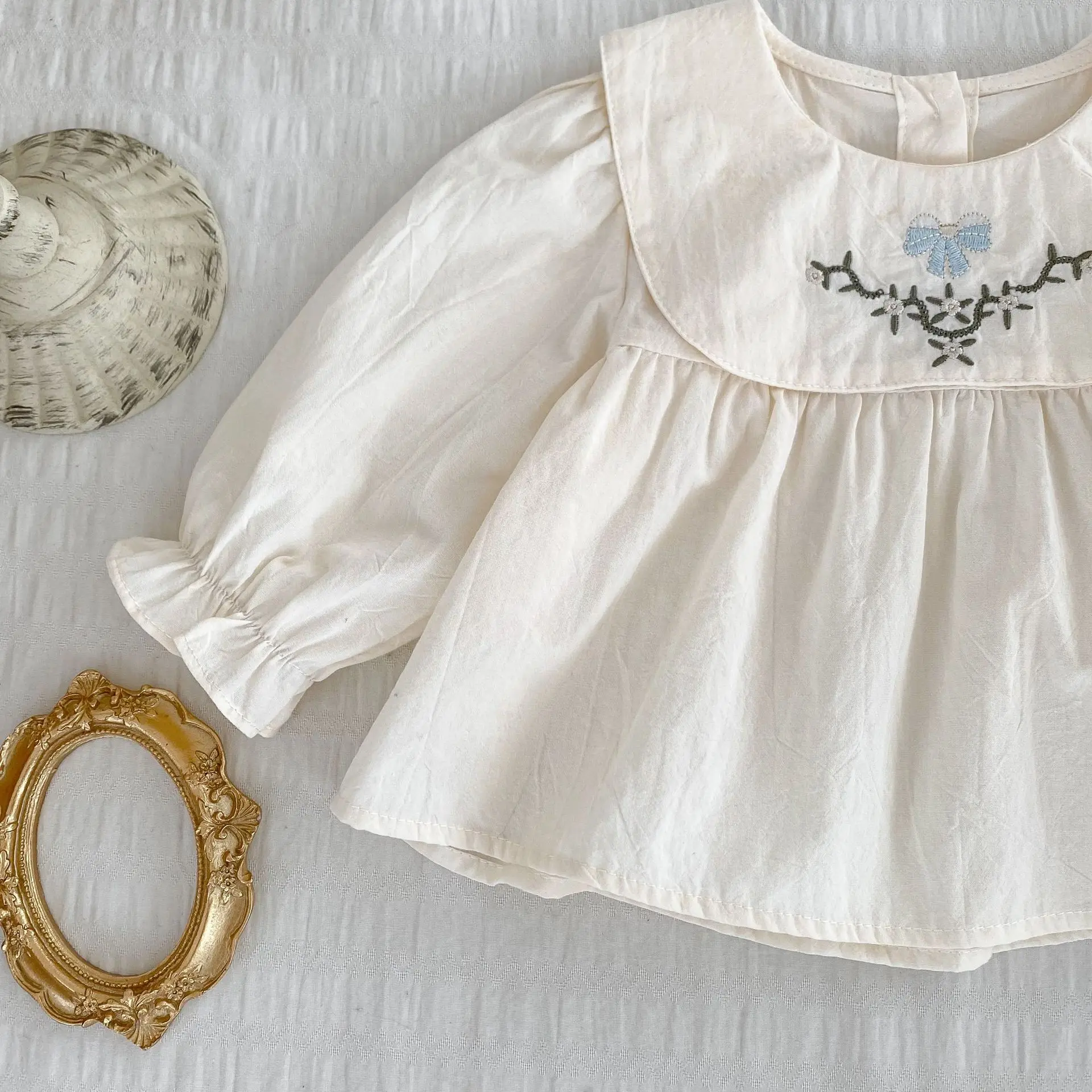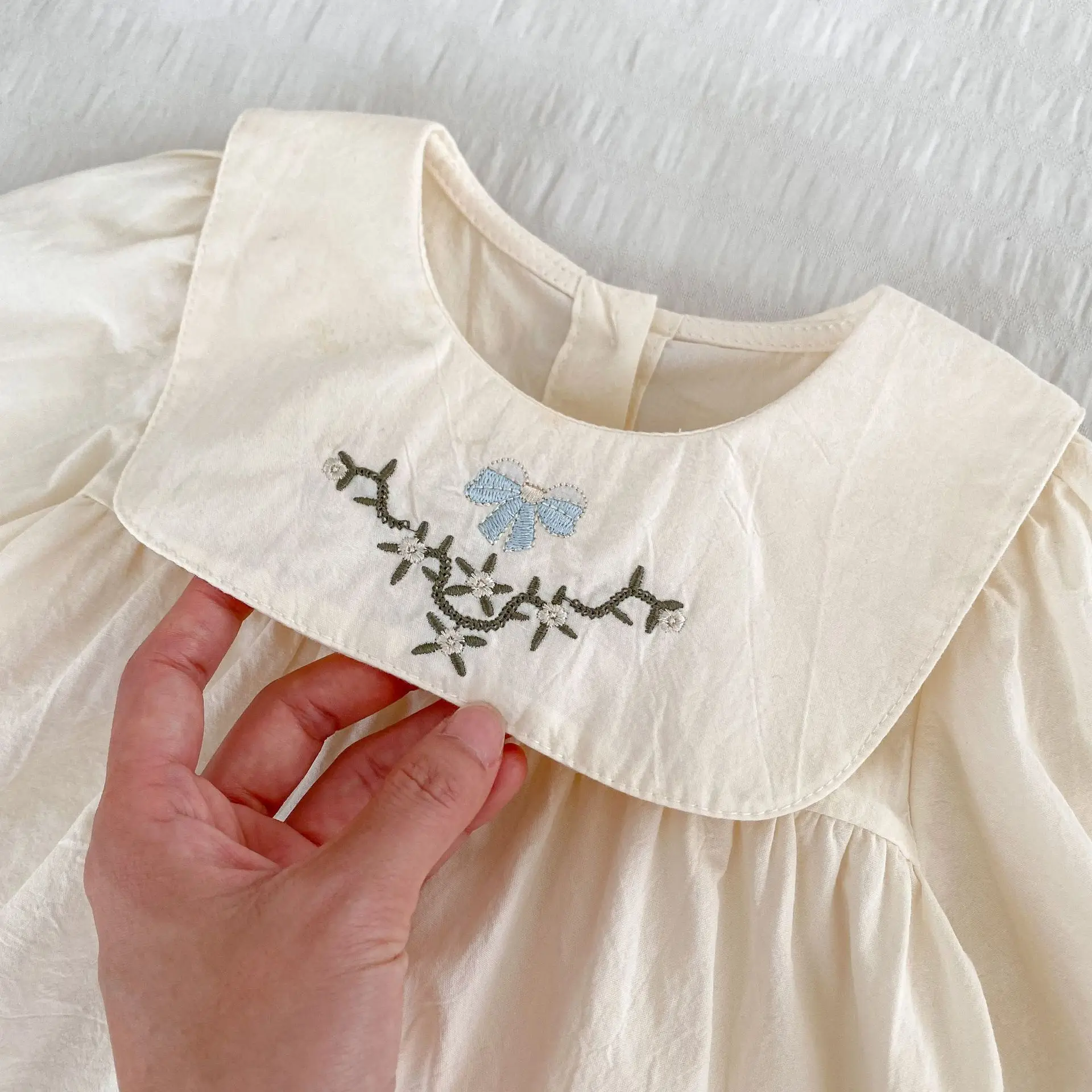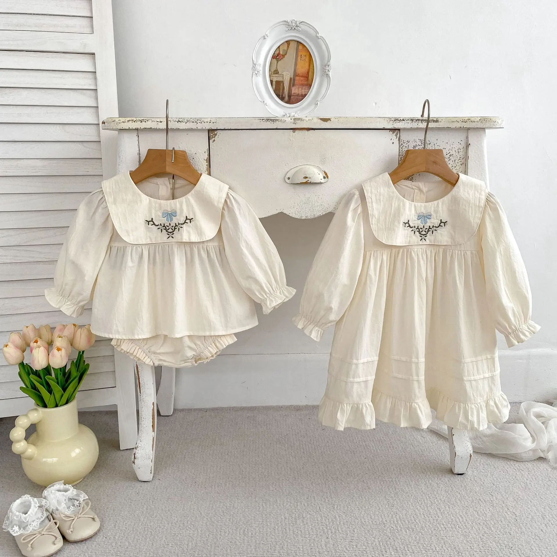 Milangel-Conjunto de ropa de otoño para bebé, vestido bordado con cuello vuelto, Top + bombacho, traje de 2 piezas, manga larga