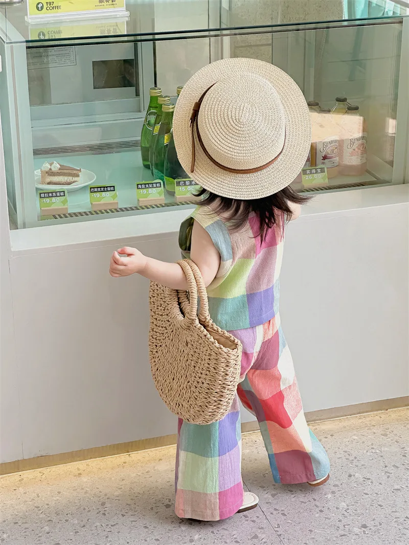 Comprar Milangel-Conjunto de ropa de verano para niñas, traje de celosía de colores bonitos, prendas de vestir para niños, 2 piezas