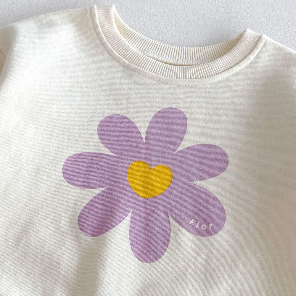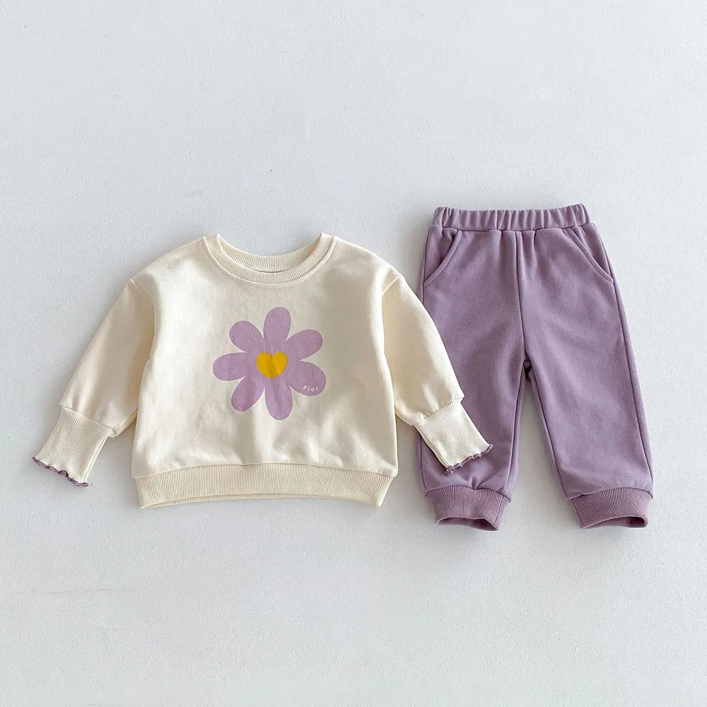 Milangel-Conjunto de Sudadera con capucha y estampado de flores para niño, traje de 2 piezas con cuello redondo y pantalones, estilo coreano, para otoño