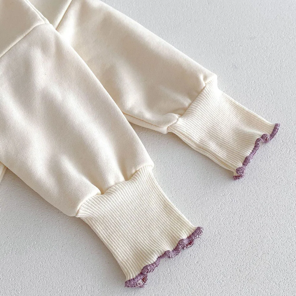 Milangel-Conjunto de Sudadera con capucha y estampado de flores para niño, traje de 2 piezas con cuello redondo y pantalones, estilo coreano, para otoño - imagen 3