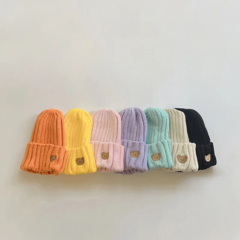 Comprar Milangel-gorro de punto con bordado de cabeza de oso para niños y niñas, gorros de Color caramelo