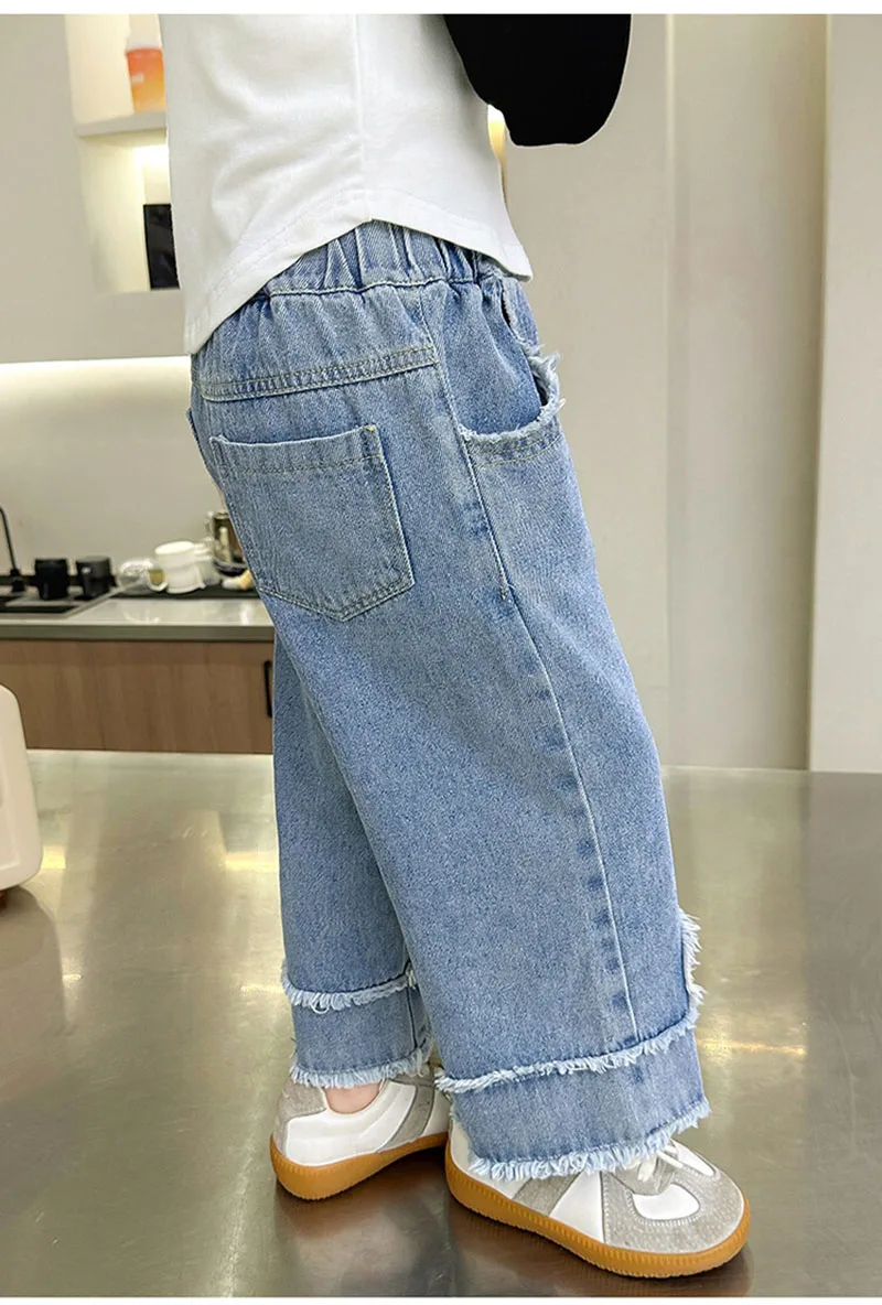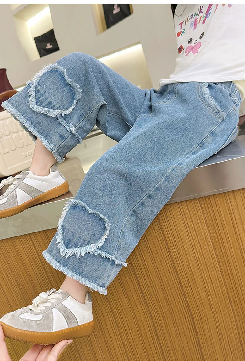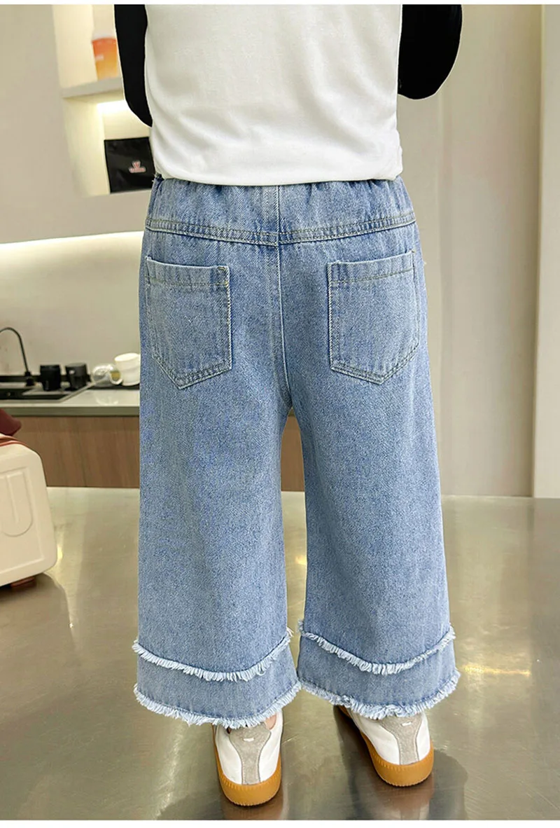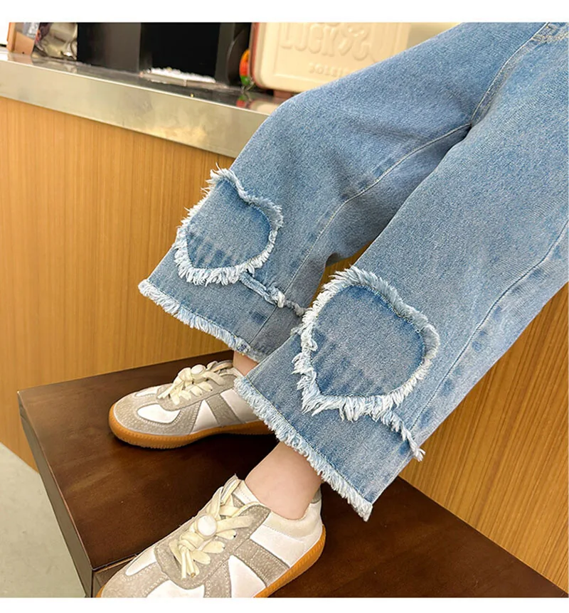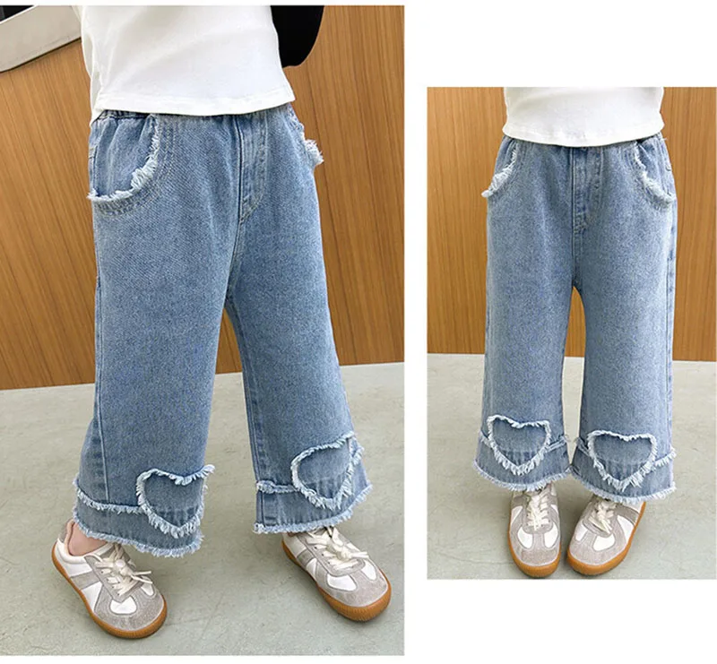 Milangel-pantalones de pierna ancha para niña, Pantalón recto con flores bordadas, dulce amor, otoño - imagen 5