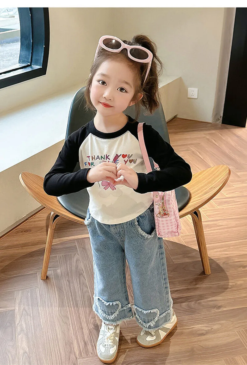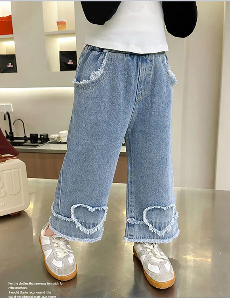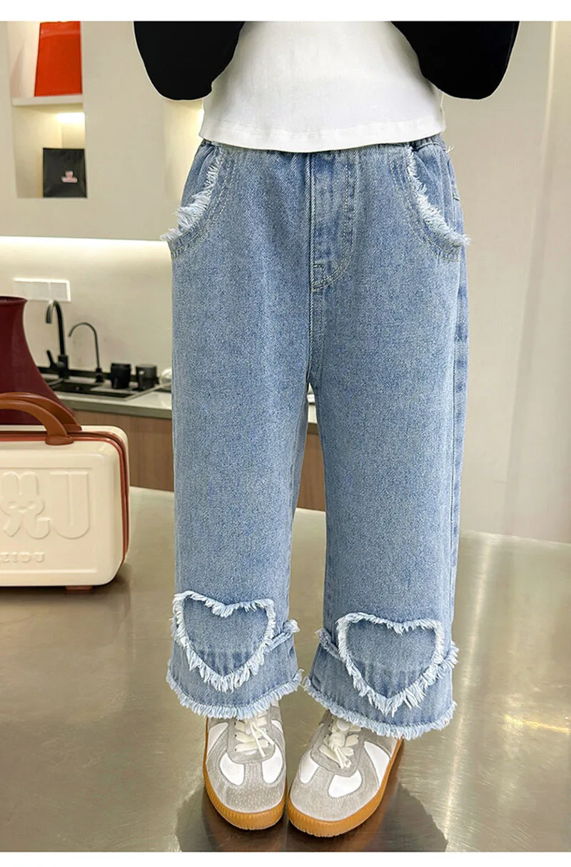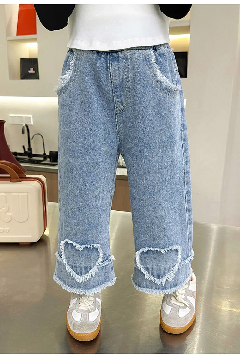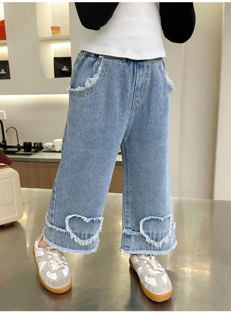Milangel-pantalones de pierna ancha para niña, Pantalón recto con flores bordadas, dulce amor, otoño