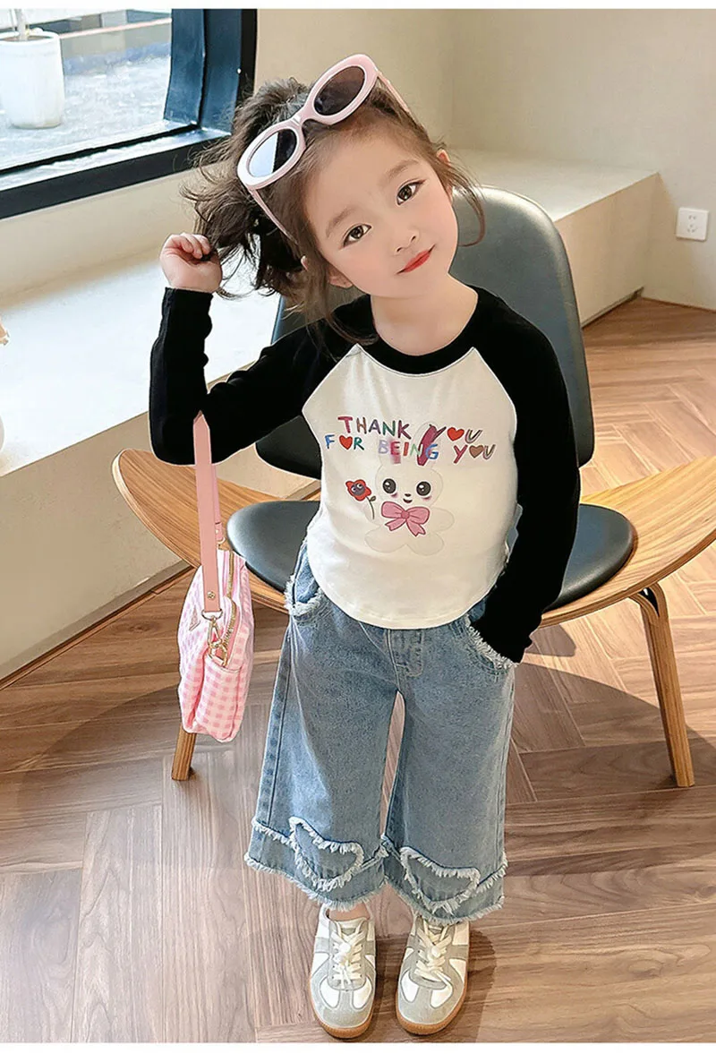 Milangel-pantalones de pierna ancha para niña, Pantalón recto con flores bordadas, dulce amor, otoño - imagen 1