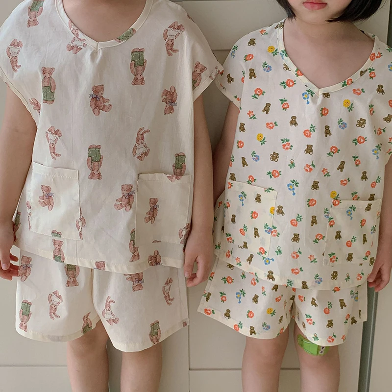 Comprar Milangel-Pijama de algodón para niños y niñas, ropa de casa, chaleco, pantalones cortos, 2022
