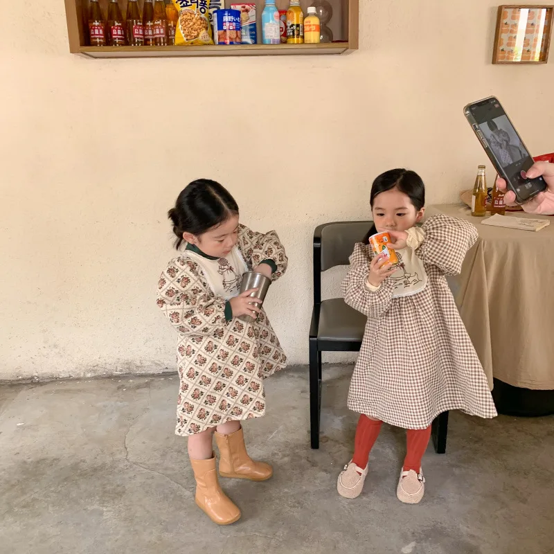 Milangel-ropa de invierno para niños, vestidos gruesos para niñas, vestido Floral para niñas, manga abullonada, prendas de vestir exteriores para niños, 2022