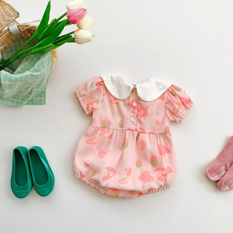 Comprar Milangel-ropa de verano para bebé, mono con solapa infantil, estampado de bebé, color rosa, una pieza