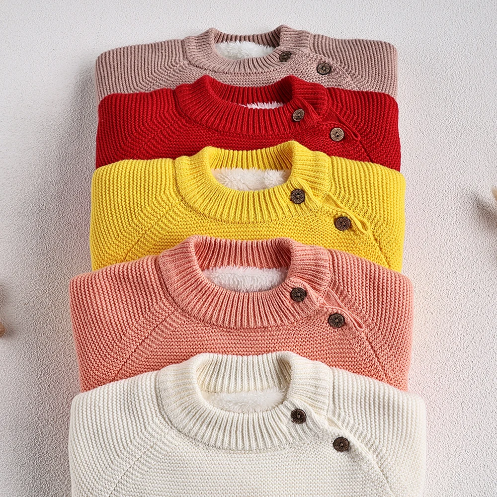 Comprar Milangel-suéteres de lana gruesa para niños, Jersey de punto con forro de piel, ropa de invierno, 2023