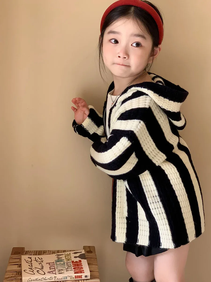 Comprar Milangel-suéteres para niñas, abrigo a rayas blancas y negras, suéter con capucha y cremallera, otoño