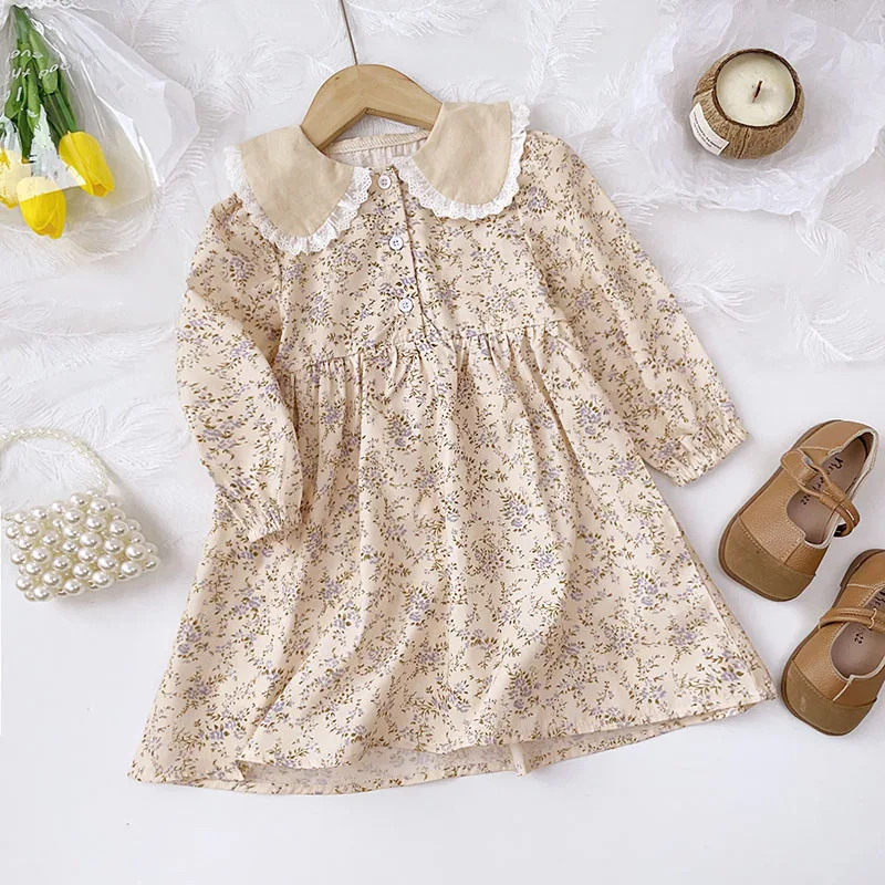 Comprar Milangel-vestidos de estilo coreano para niños de 3 a 7 años, ropa Floral con cuello Peter Pan, manga larga, otoño