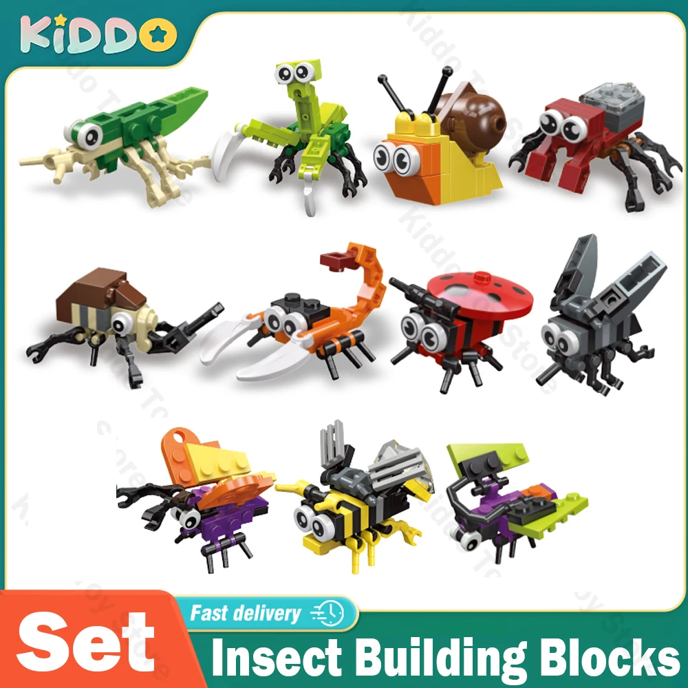 Comprar Mini bloques de construcción de insectos para niños, Mariquita clásica, Caracol, Libélula, mariposa, escarabajo, juguetes de animales, regalos coleccionables