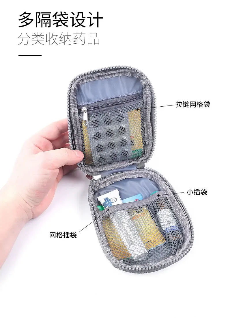 Mini bolsa de almacenamiento de medicamentos portátil, Kit de primeros auxilios de viaje al aire libre, organizador, bolsa de supervivencia de emergencia, estuche para pastillas
